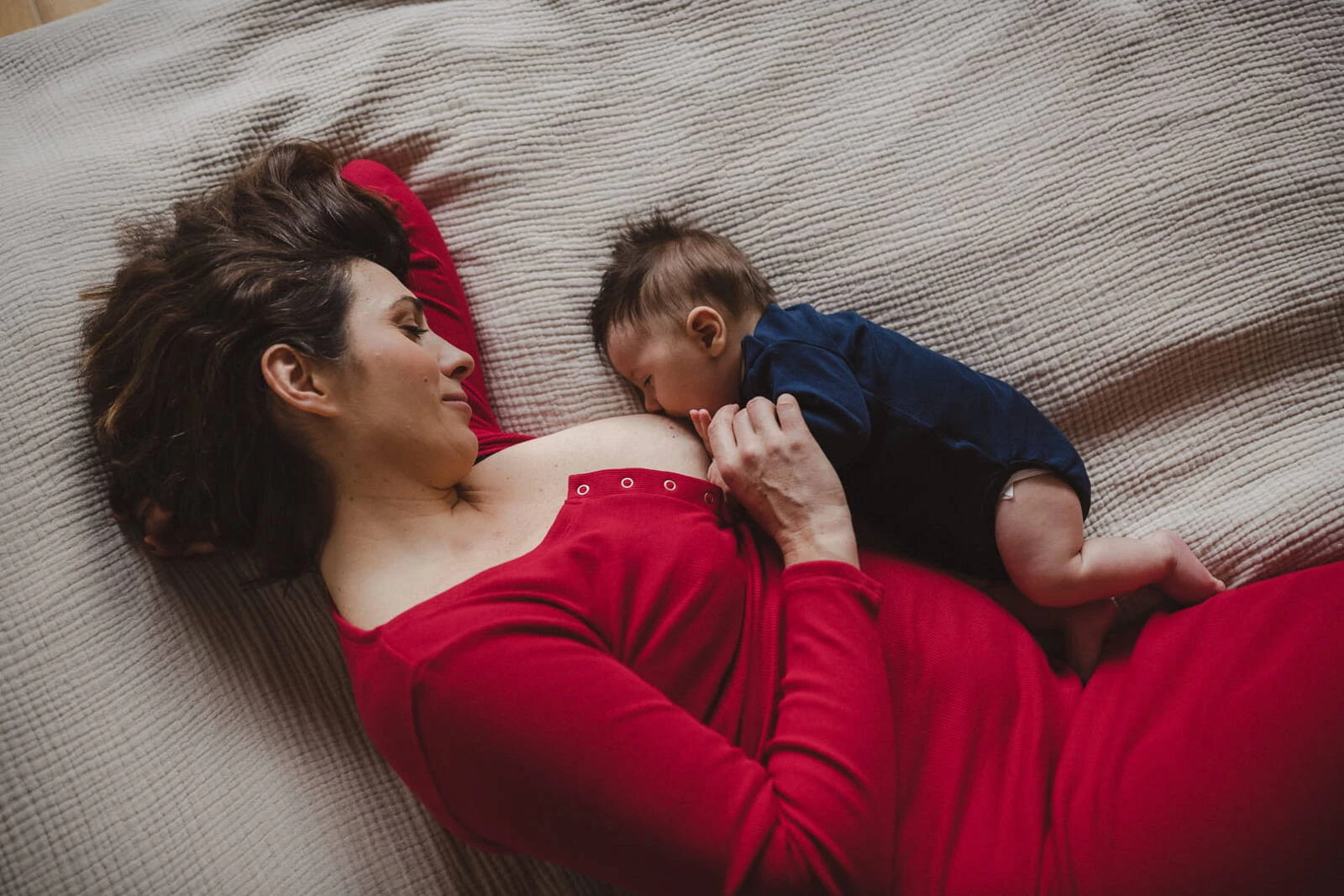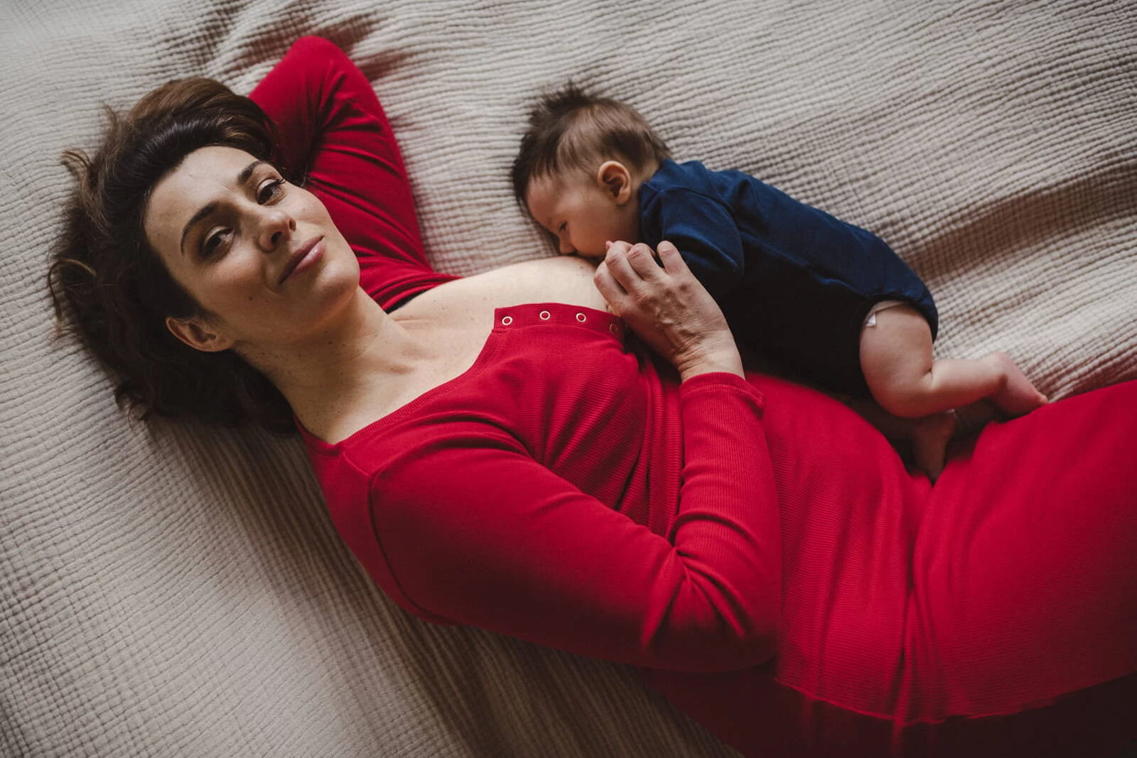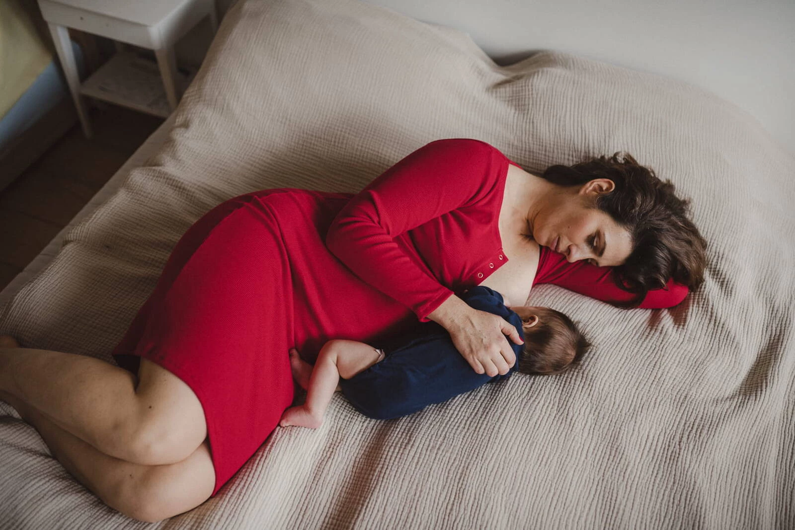 Bauchgeripptes Umstands- und Stillkleid – Karminrot