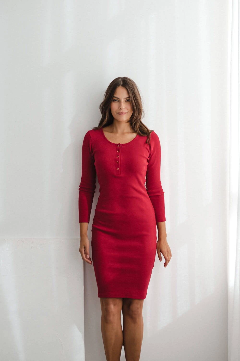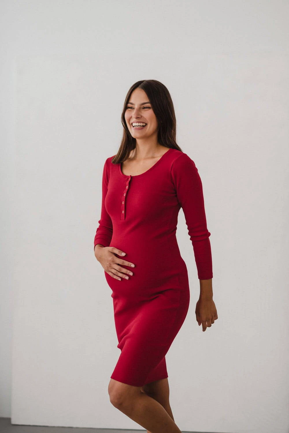 Das Umstands- und Stillkleid aus der Umstandsmode-Kollektion von Formommy besteht aus geripptem Strick in einem schönen roten Farbton. Diese Umstandsmode ist äußerst bequem und feminin. Dank hochwertigem Material, das sich nicht verformt und für Tragekomfort sorgt, bleibt Ihnen unsere Umstandsmode, darunter auch das rote Kleid für stillende Mütter, lange erhalten. Das perfekte Basic-Umstandskleid hat einen taillierten Schnitt und Druckknöpfe am Ausschnitt, was ein freies und diskretes Stillen ermöglicht. Bequeme Umstands-/Stillkleider sind ab dem ersten Trimester perfekt, Sie können sie auch nach der Schwangerschaft wie traditionelle gerade Kleider tragen.