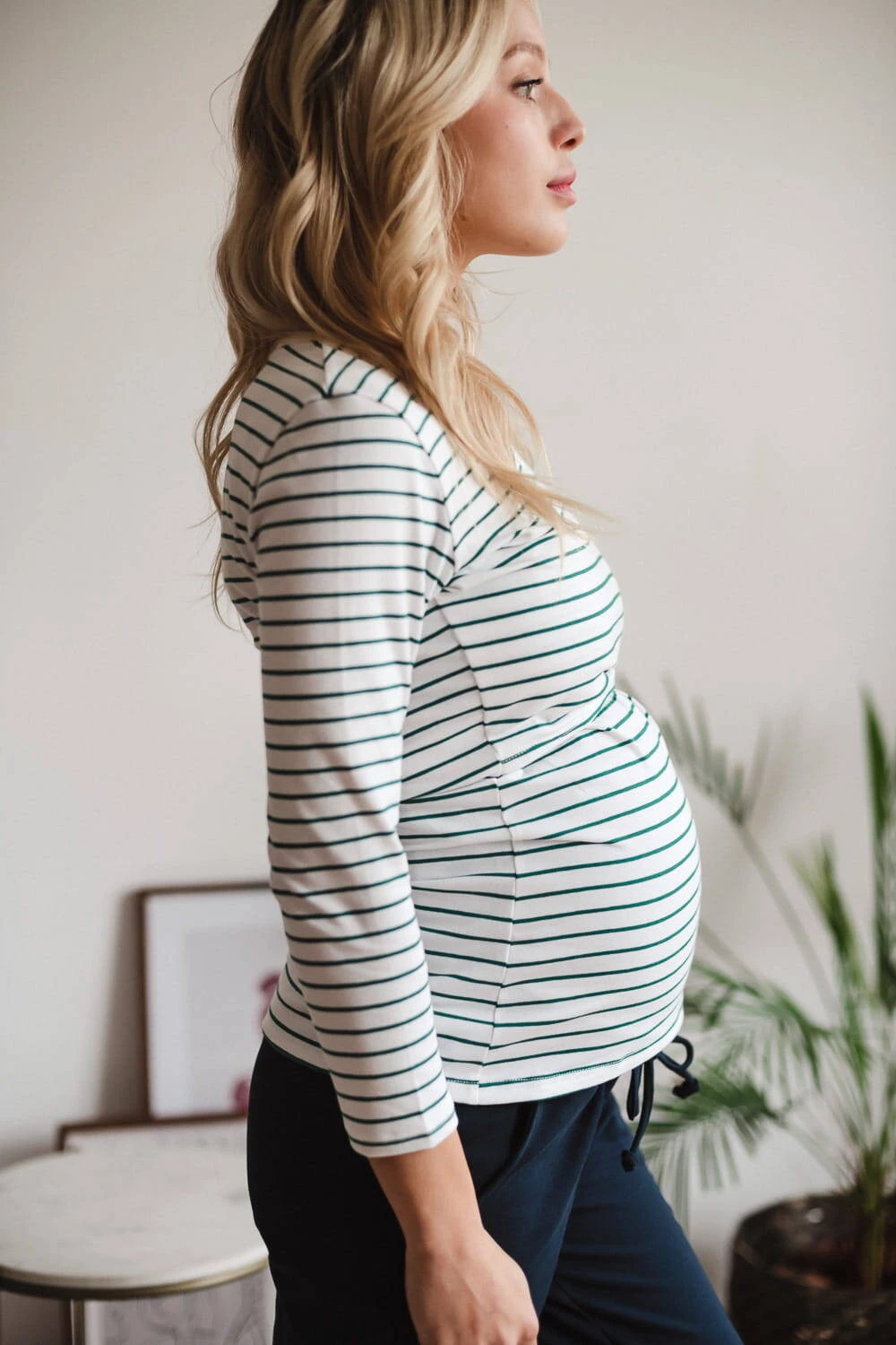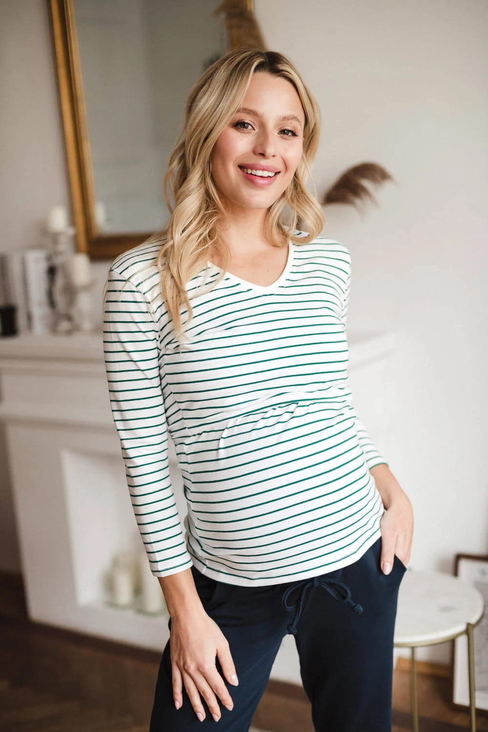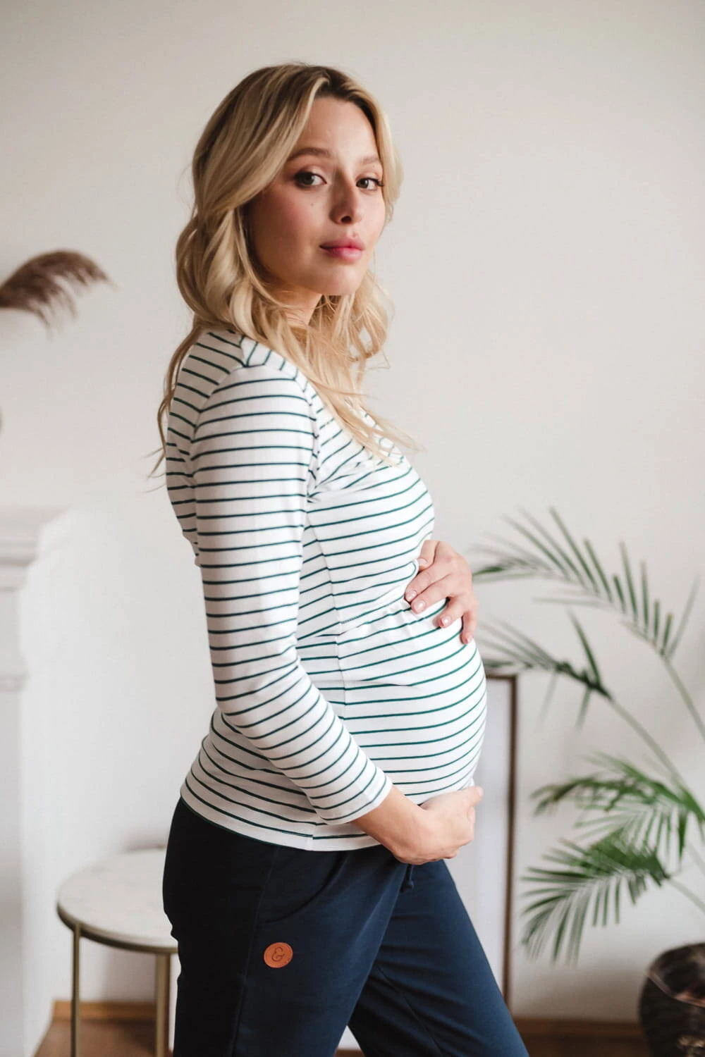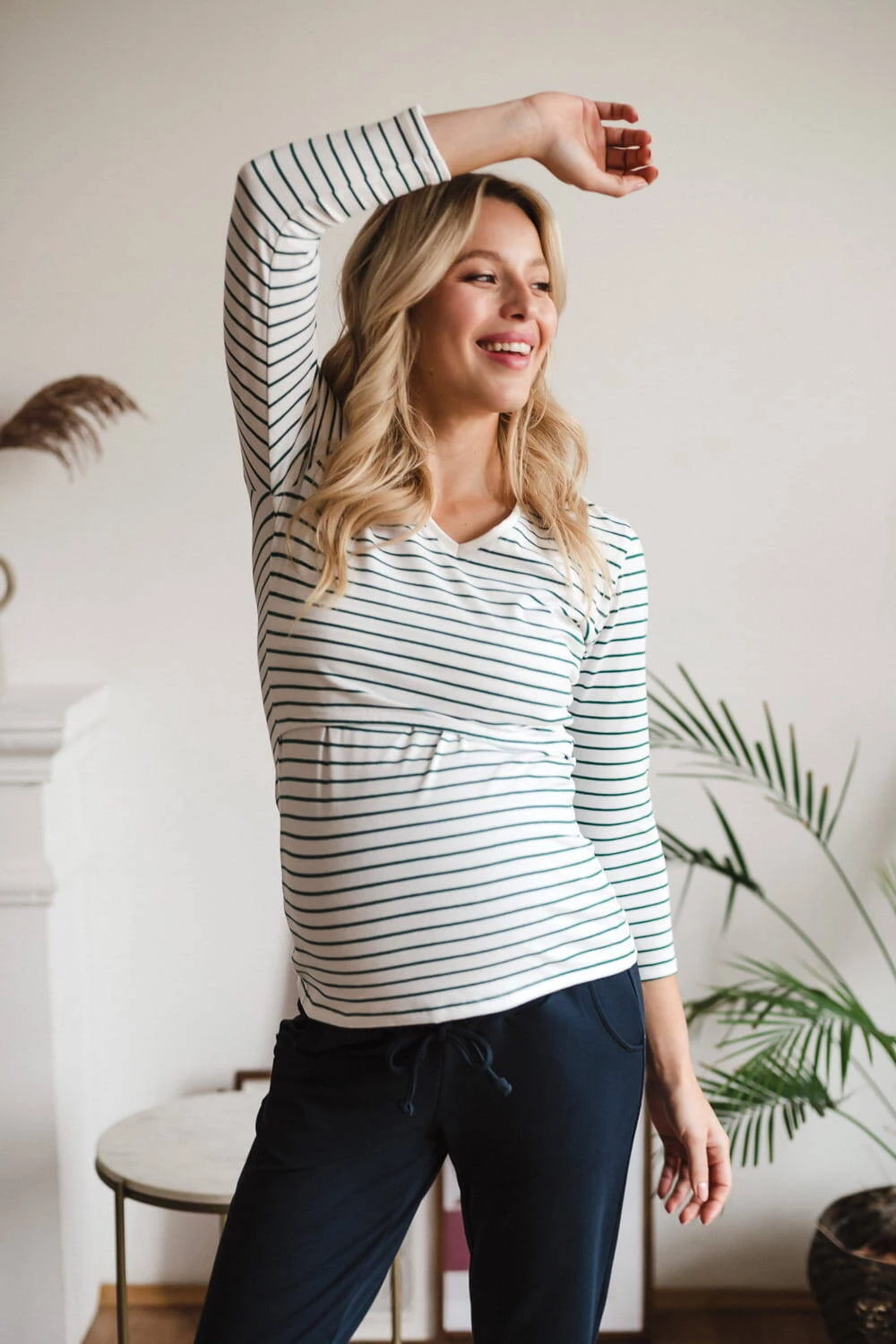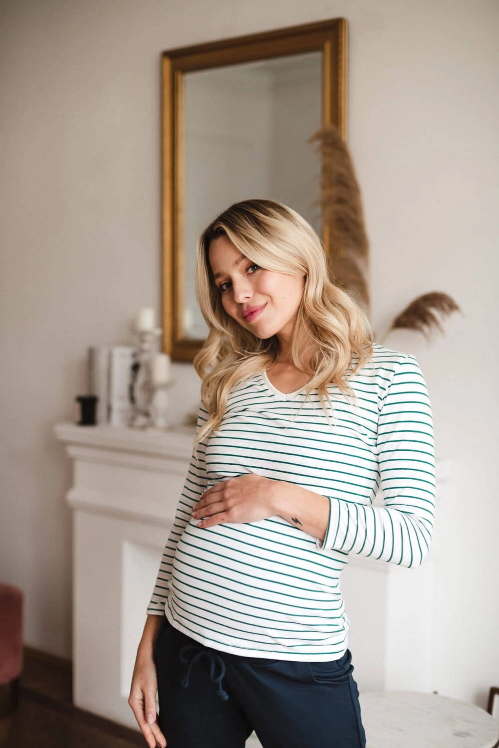 Umstands- und Stillbluse Milk Shirt – Grün-weiß gestreift