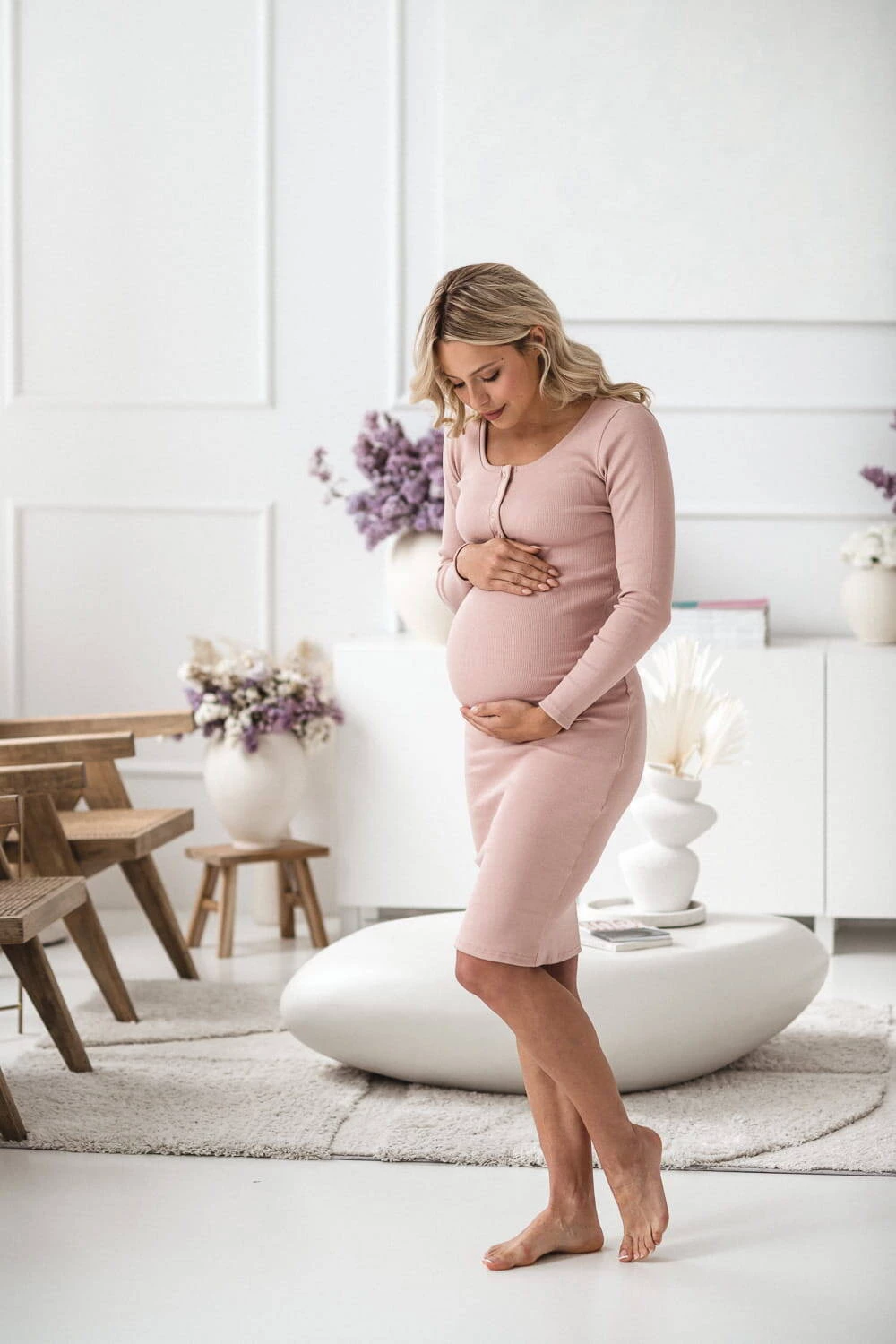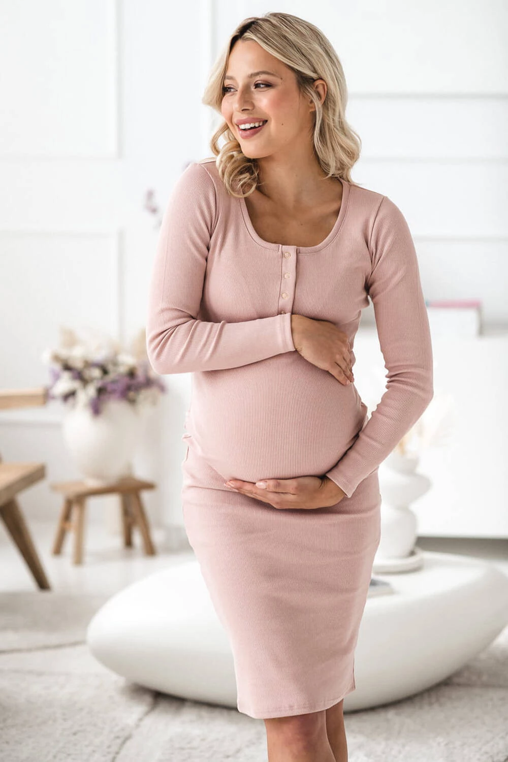 Geripptes Umstands- und Stillkleid im Bauchbereich – Puderrosa