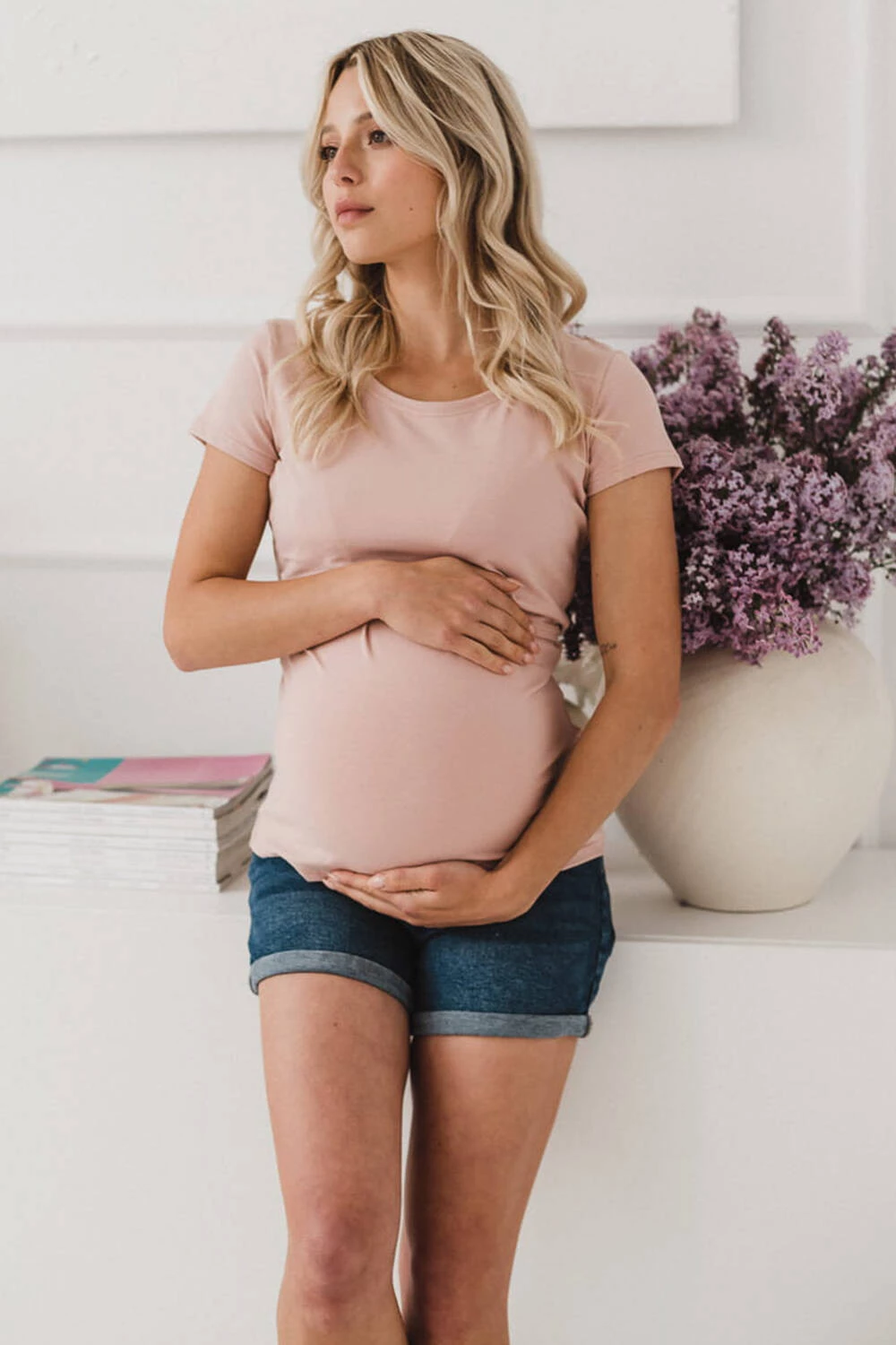 Damit Sie es sich noch heute gemütlich machen können , schauen Sie sich unsere bequemen Umstandsblusen für Schwangere aus einem Baumwoll-Elastan-Gemisch an, die jeder Frau passen.  Eine große Auswahl an  angenehm anzufassenden und perfekten Umstandsblusen in Farben und Größen zeigt Ihnen, dass Sie bei Formommy garantiert fündig werden. Beachten Sie, wie schön diese rosa Umstandsbluse mit kurzen Ärmeln genäht ist, und erfüllen Sie noch heute Ihre Erwartungen.