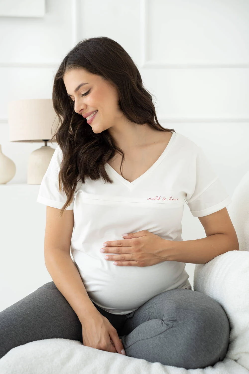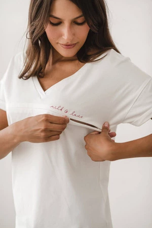 Cremefarbene Bluse für Schwangere und stillende Mütter. Die perfekte Umstandsbluse mit schlichtem Schnitt, die Ihre Umstandsgarderobe perfekt ergänzt. Die Umstands- und Stillblusenmodelle der Marke Milk & Love sind bequem und bequem, egal ob es draußen warm oder kalt ist. Eine perfekte Lösung für jeden Tag und ein elegantes Outfit, an dem keine zukünftige Mutter vorbeikommen kann. Bequeme und stilvolle Umstandsblusen mit kurzen Ärmeln, die sich dem Charakter jeder einzelnen von Ihnen anpassen.