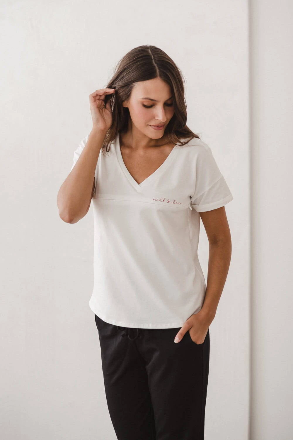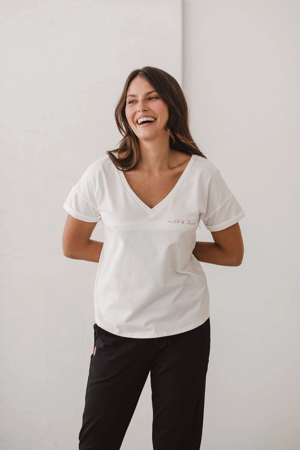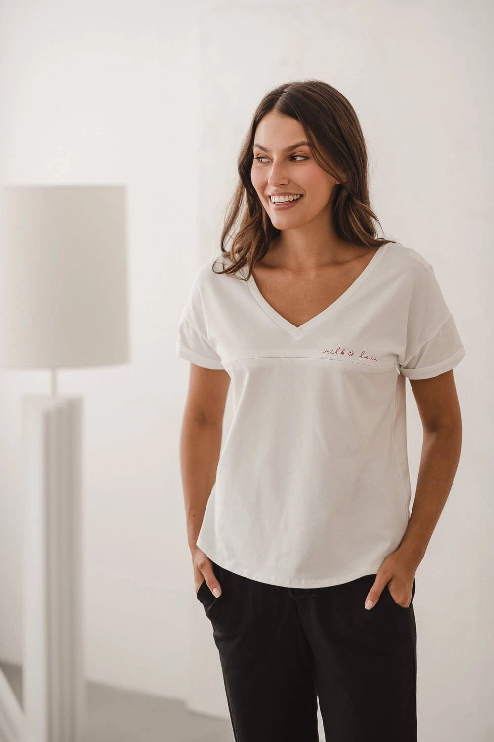 Umstands- und Stillbluse M-Shirt V-Ausschnitt, cremeweiß