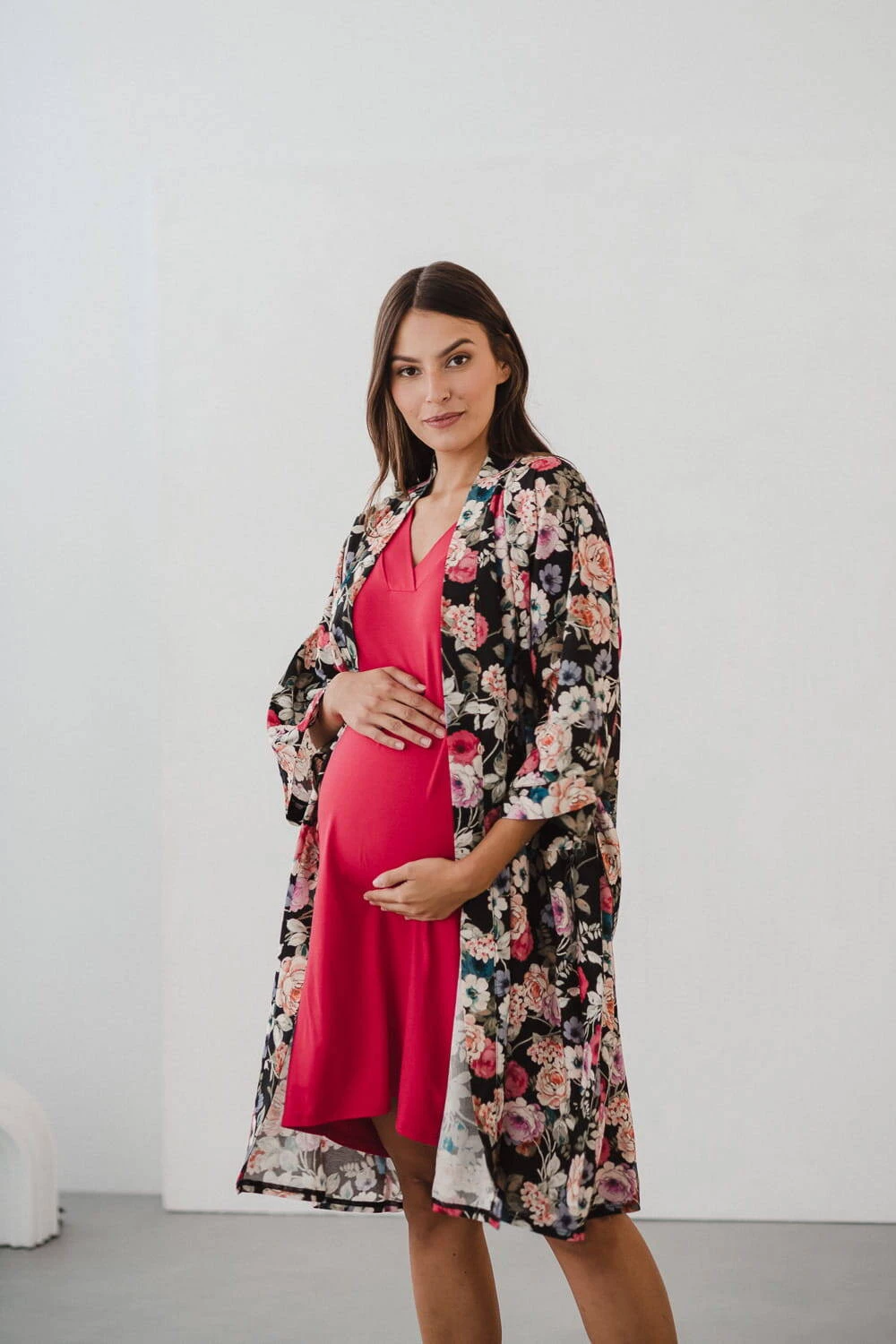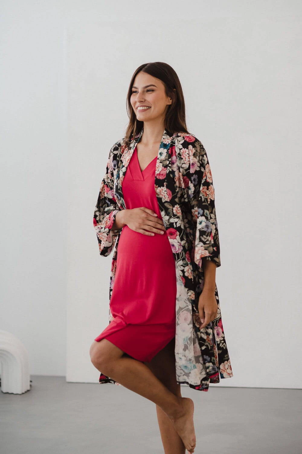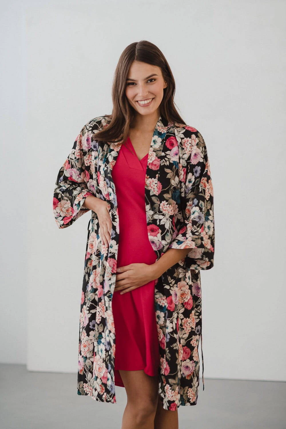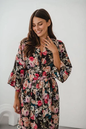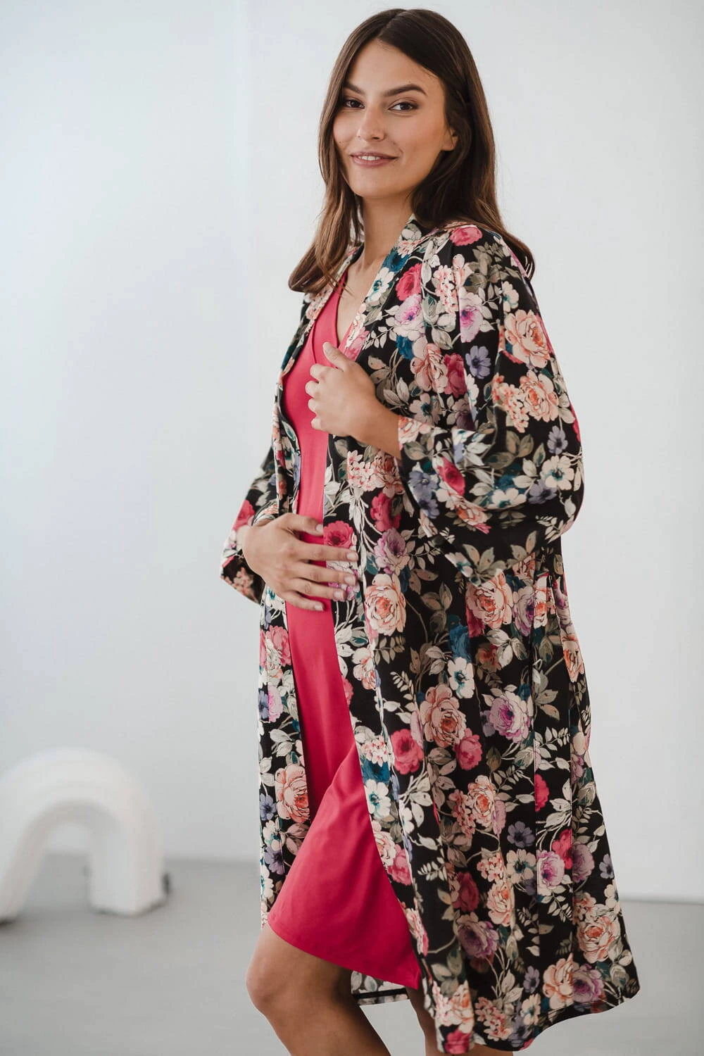 Entdecken Sie die magische Welt des Komforts und der Eleganz – schauen Sie sich unseren Umstandsbademantel in limitierter Auflage aus elegantem Blumenstoff mit Leinenzusatz an . Ein bequemer Bademantel ist ein Kleidungsstück, das zur Babyausstattung der werdenden Mutter gehören muss. Ein Umstandsbademantel für das Garden Hospital kann Ihre Oase der Ruhe und des Komforts sein – Viskose mit Leinenzusatz umhüllt Ihren Körper während der Schwangerschaft und nach der Geburt und sorgt für einzigartige Zartheit und ein Gefühl von Leichtigkeit. Ausreichend lang, ideal für die Zeit nach der Geburt, und die kurzen 7/8-Ärmel ermöglichen es Ihnen, alltägliche Aktivitäten frei auszuführen, ohne Ihre Bewegungen bei der Pflege Ihres Neugeborenen einzuschränken.