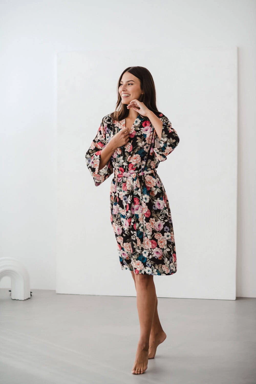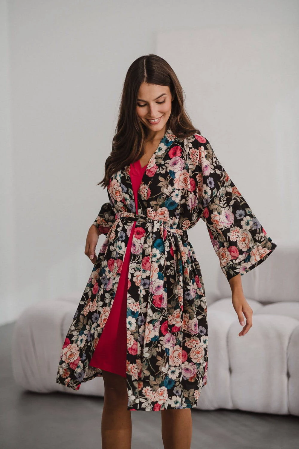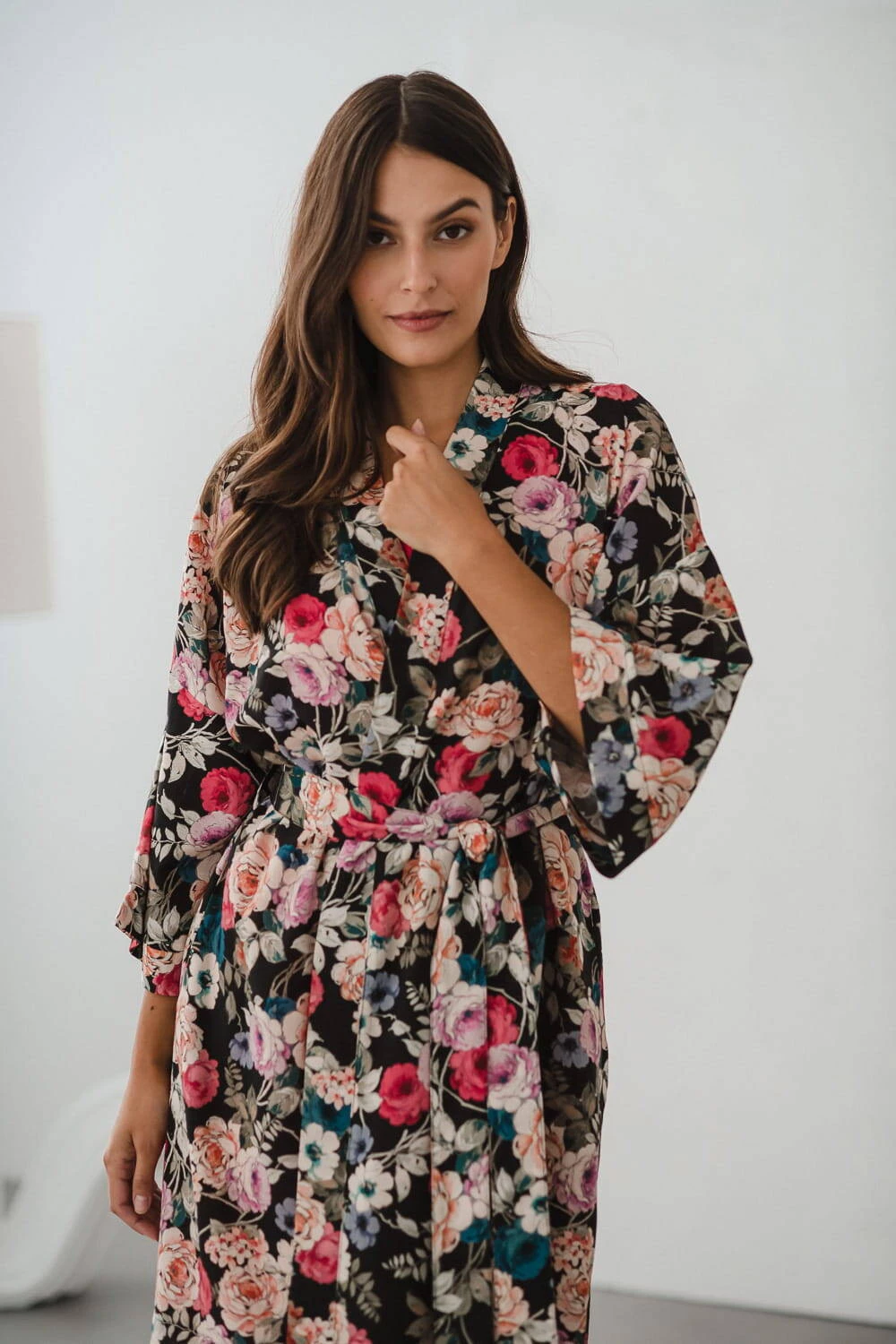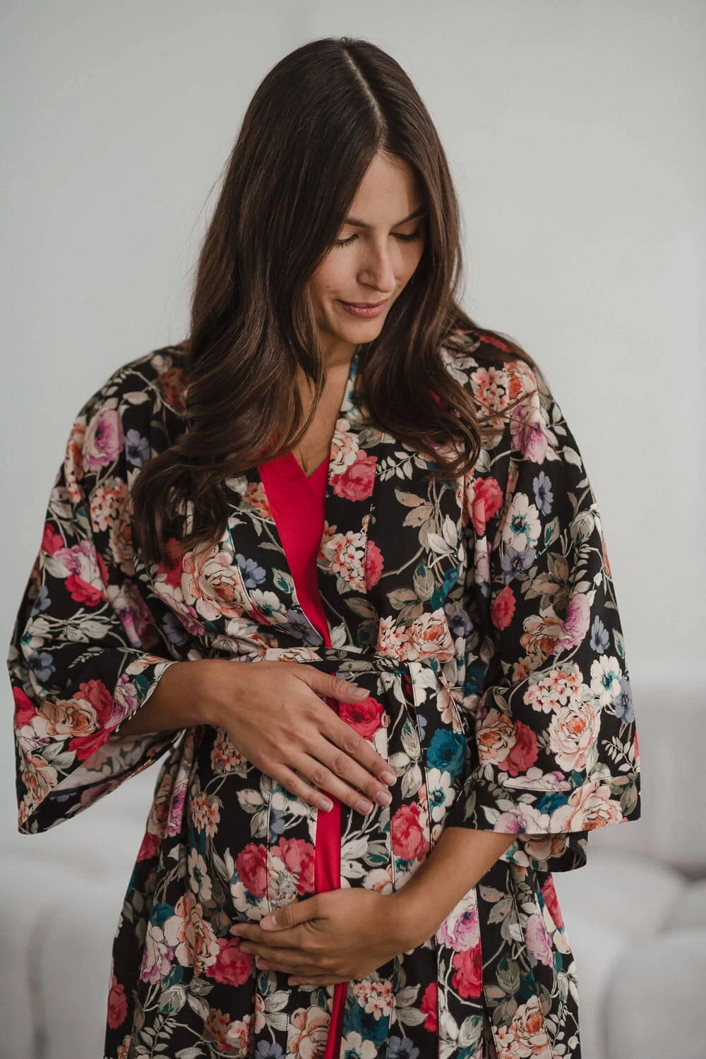 Entdecken Sie die magische Welt des Komforts und der Eleganz – schauen Sie sich unseren Umstandsbademantel in limitierter Auflage aus elegantem Blumenstoff mit Leinenzusatz an . Ein bequemer Bademantel ist ein Kleidungsstück, das zur Babyausstattung der werdenden Mutter gehören muss. Ein Umstandsbademantel für das Garden Hospital kann Ihre Oase der Ruhe und des Komforts sein – Viskose mit Leinenzusatz umhüllt Ihren Körper während der Schwangerschaft und nach der Geburt und sorgt für einzigartige Zartheit und ein Gefühl von Leichtigkeit. Ausreichend lang, ideal für die Zeit nach der Geburt, und die kurzen 7/8-Ärmel ermöglichen es Ihnen, alltägliche Aktivitäten frei auszuführen, ohne Ihre Bewegungen bei der Pflege Ihres Neugeborenen einzuschränken.