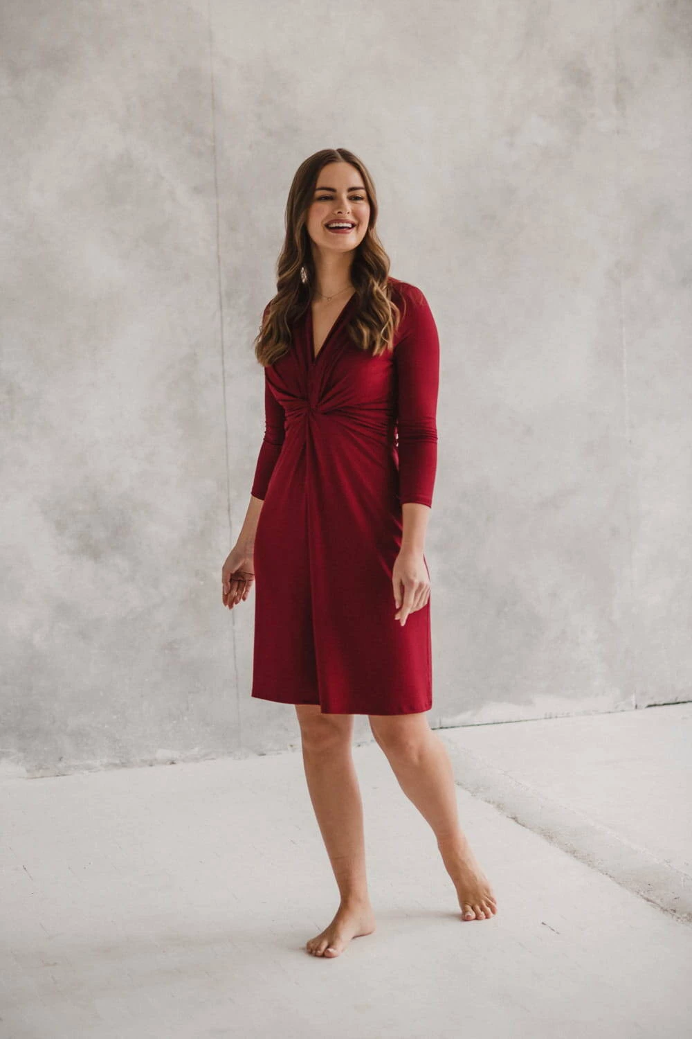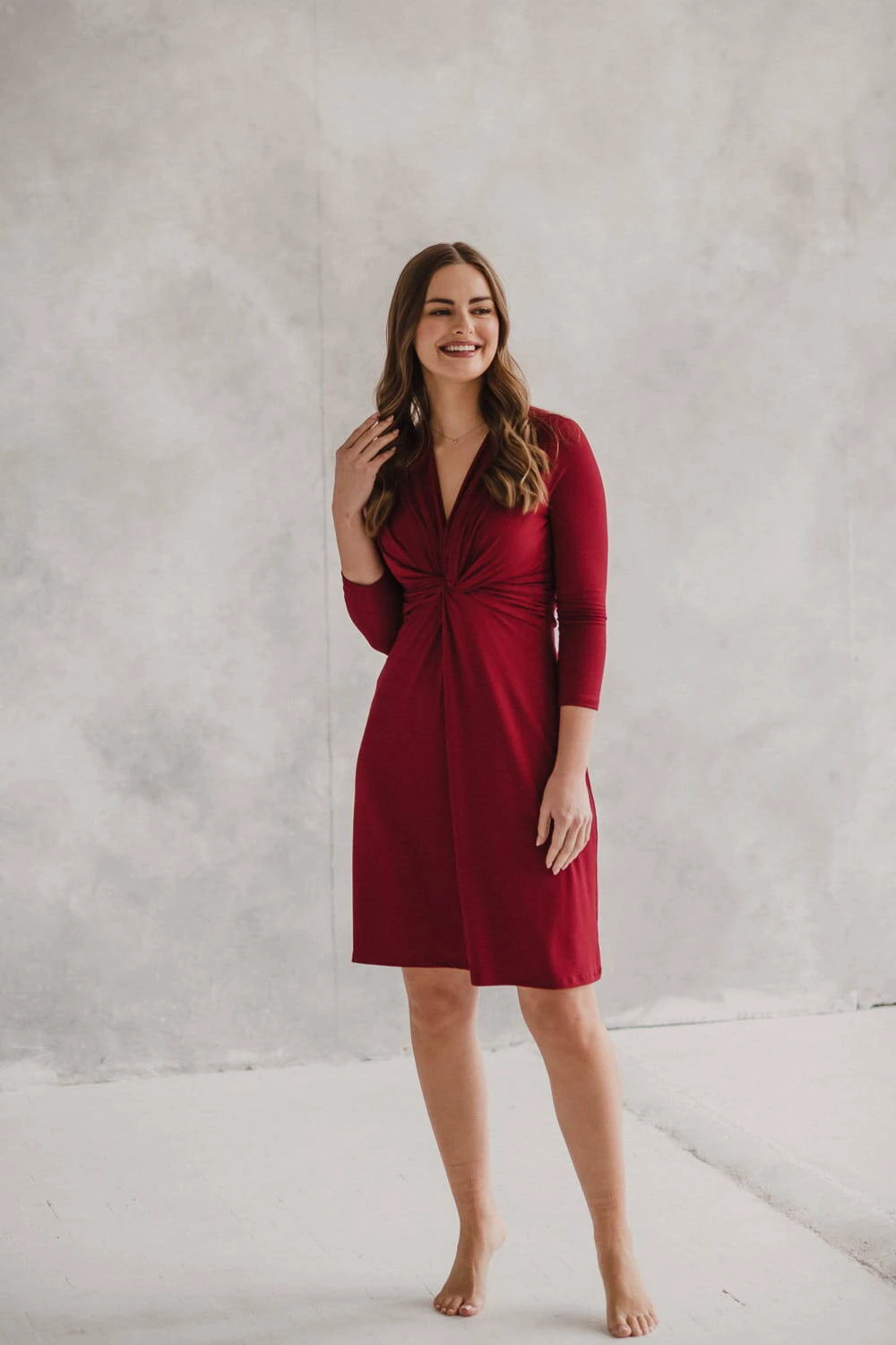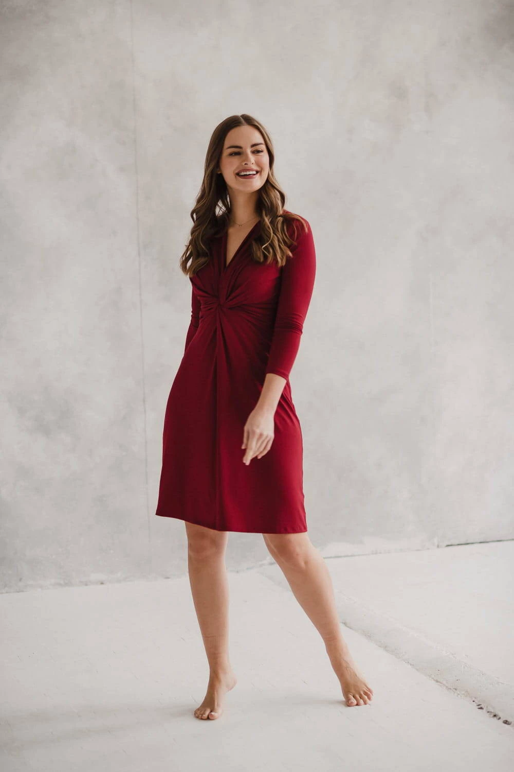 Umstands- und Stillkleid Loop, 7/8-Ärmel, Burgunderrot