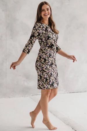 Milky Classic Stillkleid, 3/4 Arm, schwarz, mit Blumen