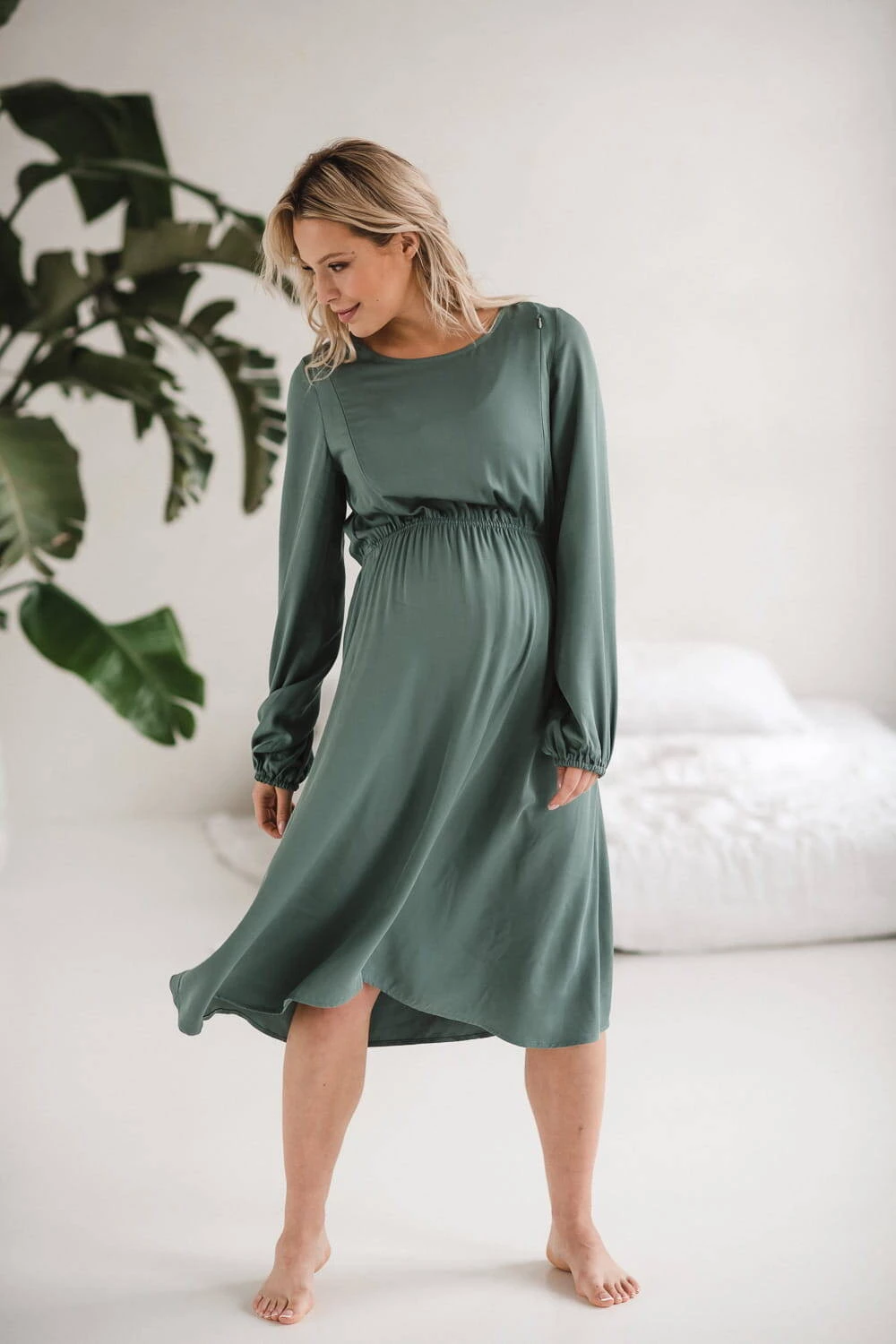 Lovely Dress Midi Umstands- und Stillkleid mit langen Ärmeln, Mint