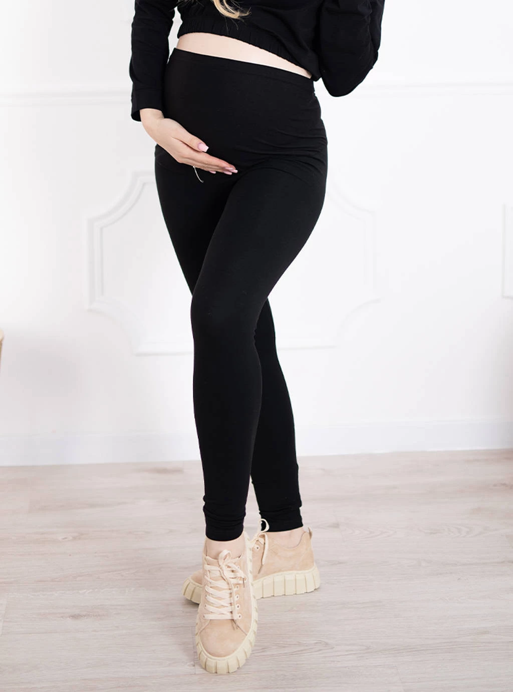 Umstandsleggings mit elastischem Überbauch-Bund für werdende Mamis ,gemacht in anschmiegsamer Baumwoll bietet viel Platz für den wachsenden Bauch und gehört zur Basis-Ausstattung jeder werdenden Mutter. Dank einem hohen Bund passt die Leggings bereits bequem in der Schwangerschaft und schneidet nicht ein, sorgt für festen Halt und eine hervorragende Passform. Hochwertige, seidigweiche Baumwoll 5% Lycra sind dabei die optimale Mischung für hohen Tragekomfort. Spezieller Schnitt ermöglicht es den schwangeren Frauen, sich wohl und bequem zu fühlen.Ein druckfreier Bund mit einem Gummiband hält die Leggings über dem Bauch. Sie wurden für Frauen und ihre besondere Bedürfnisse während der Schwangerschaft entwickelt. Sie sind für jedes Schwangerschaftstrimester geeignet. die perfekte Kombination aus Qualität und Komfort. Die Leggings passen sich dem wachsenden Bauch an und bieten eine gute Bewegungsfreiheit, reizt die empfindliche Haut nicht
