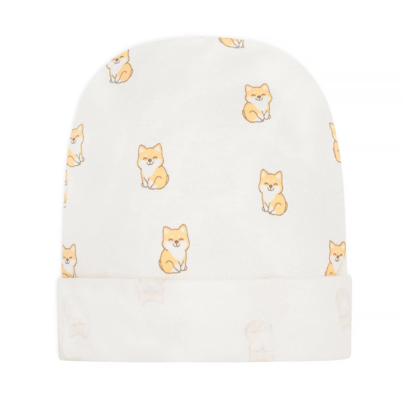 Czapeczka niemowlęca, cienka, jednowarstwowa, w kolekcji Lovely day została uszyta w 100% z miękkiej bawełny w kolorze écru, ozdobionej nadrukiem wesołych piesków Shiba. Jest elastyczna, a dodatkowo dzięki wszytej plisce dobrze przylega do małej, dziecięcej główki, zapewniając ochronę uszu przed wiatrem podczas spacerów w ciepłe dni. Sprawdzi się również jako czapeczka kąpielowa. Kompletując wyprawkę dla swojego maluszka, warto o niej pamiętać. Czapeczka wyprodukowana jest w Polsce. W kolekcji Lovely Day występuje również w kolorze beżowym, różowym, białym, zielonym, szarym, niebieskim i ecru.