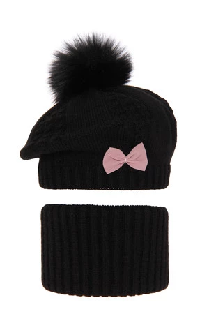 Winterset Mädchen: Mütze und Schlauchschal mit Bommel Schwarz Amora