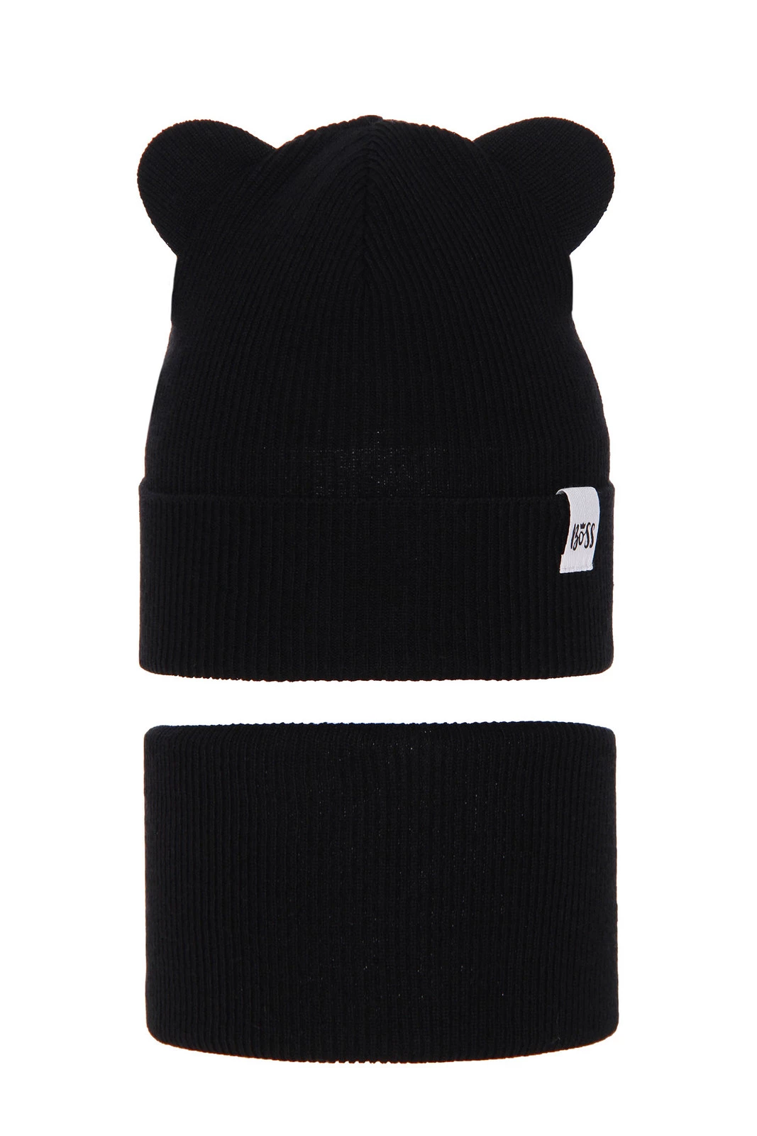 Herbst und Frühlingsset Mädchen: Mütze und Schlauchschal, mit Baumwolle, Schwarz Kajra