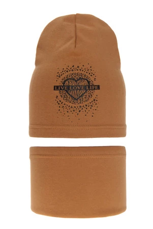 Herbst und Frühlingsset Mädchen baumwolle: Mütze und Schlauchschal Camel Esmeralda