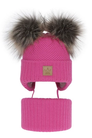 Winterset Mädchen: Mütze und Schlauchschal mit zwei Bommeln Rosa Minsi