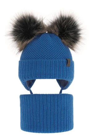 Winterset Jungen: Mütze und Schlauchschal mit zwei Bommeln Blau Randel