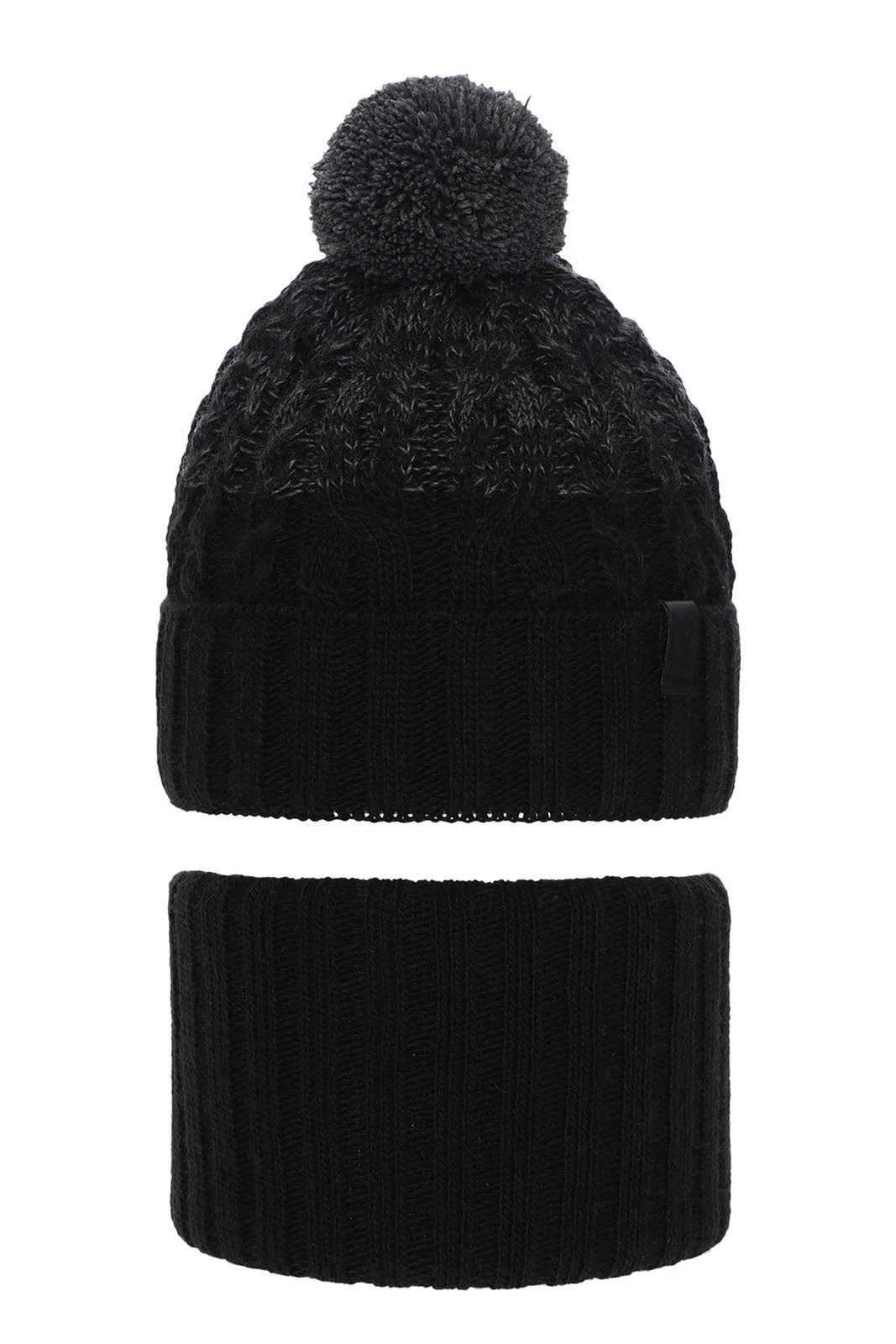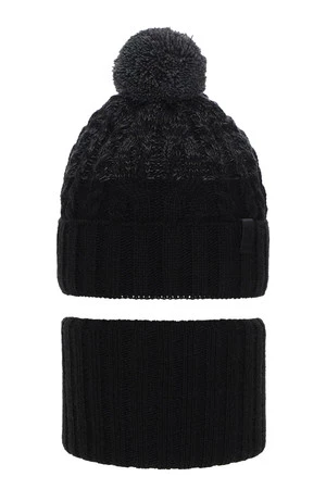 Winterset Jungen: Mütze und Schlauchschal mit Bommel Schwarz Travis