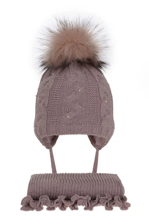 Ein effektvolles Highlight des Sets ist der große, weiche Bommel aus Eco-Fell, der dem Ganzen einen niedlichen Charakter verleiht. Der Schal wurde sorgfältig verarbeitet und bewahrt die stilistische Einheitlichkeit mit der Mütze. Das Material des Wintersets zeichnet sich durch eine angenehme Struktur aus, die die empfindliche Kinderhaut nicht reizt.