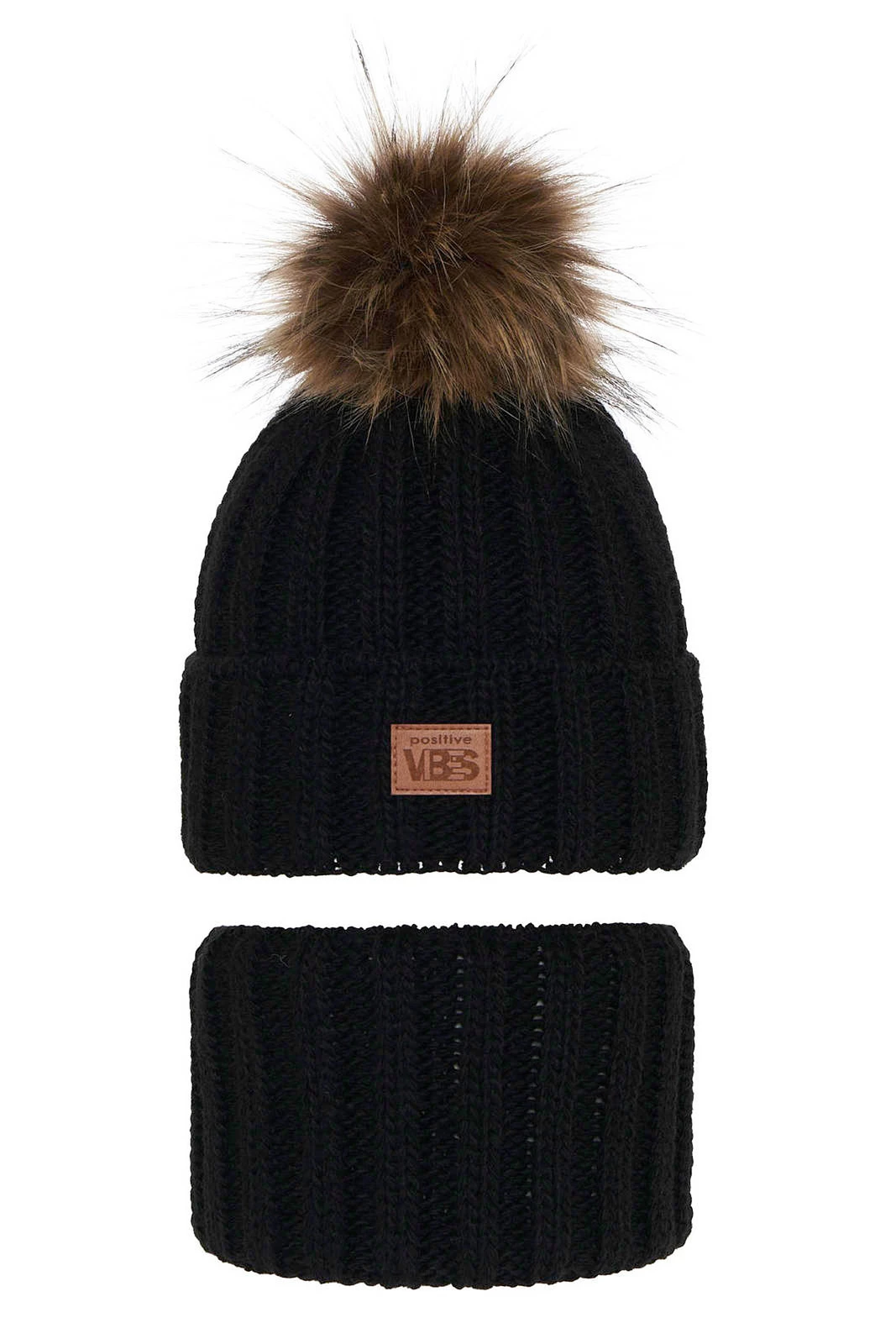 Winterset Jungen: Mütze und Schlauchschal mit Bommel Schwarz Remes
