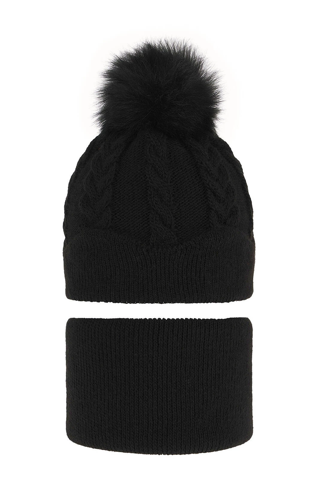 Winterset Mädchen: Mütze und Schlauchschal mit Bommel Schwarz Etula