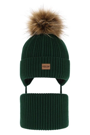 Winterset für Jungen: Mütze und Schlauchschal mit Bommel in Grün Eger
