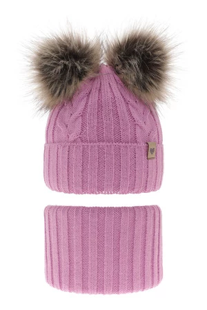 Winterset für Mädchen: Mütze und Schlauchschal mit zwei Bommeln in Rosa Amala