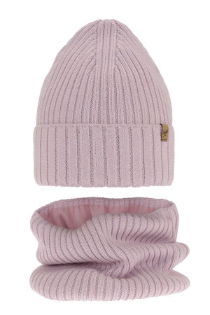 Winterset für Mädchen: Mütze und Schlauchschal aus Merinowolle in Violet Mesalia
