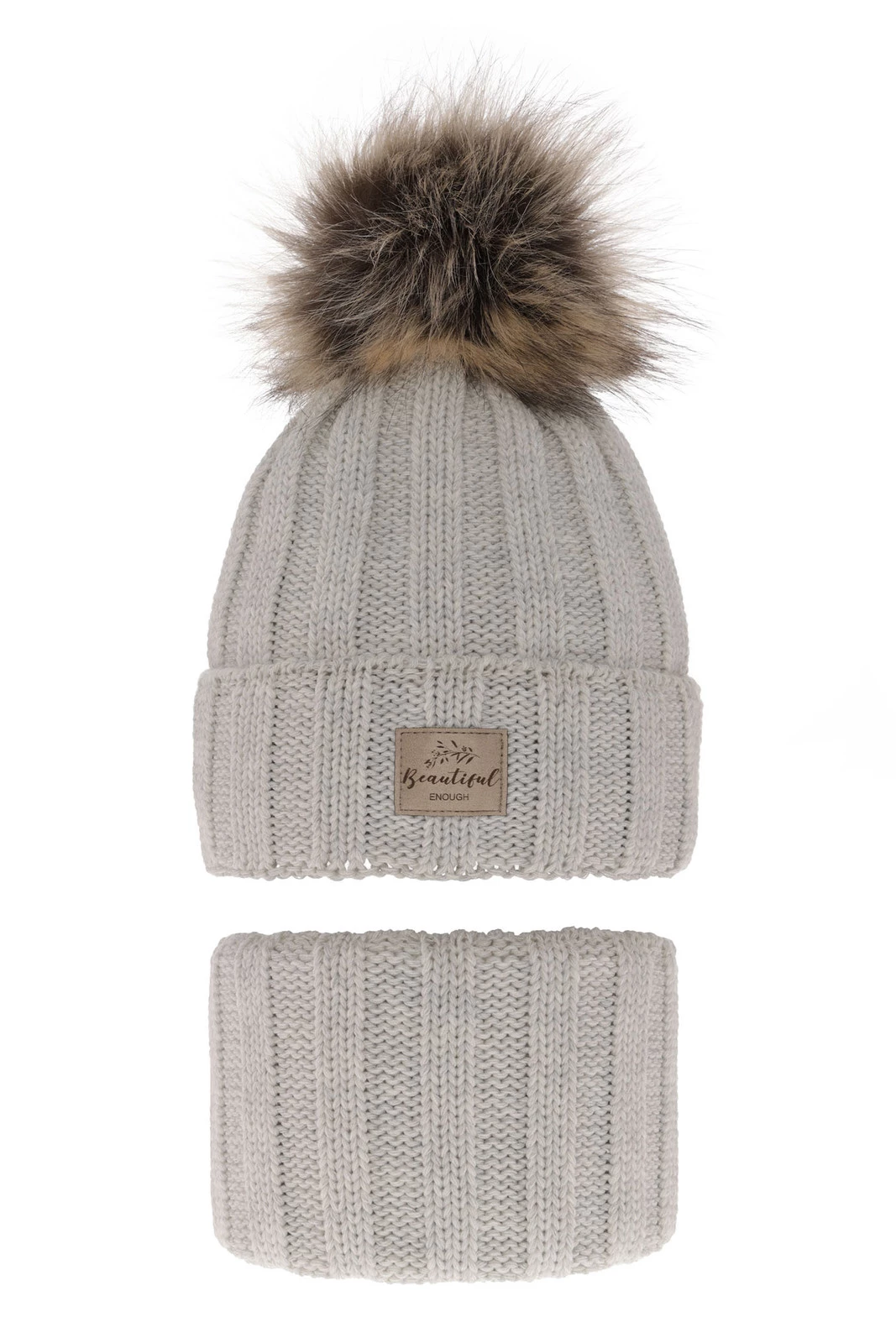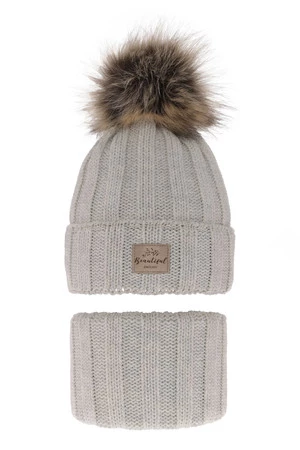 Winterset Mädchen: Mütze und Schlauchschal mit Bommel Grau Kaliope
