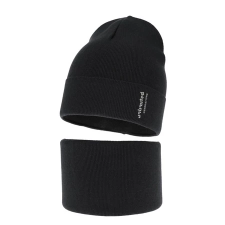 Herbst und Frühlingsset Jungen: Mütze und Schlauchschal, mit Baumwolle, Black Timothe