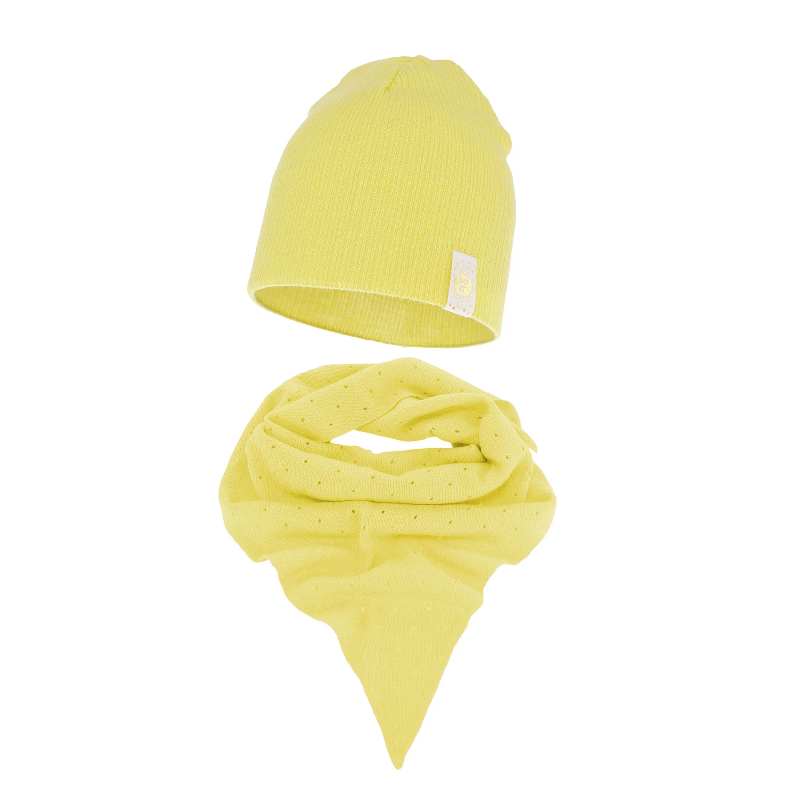 Herbst und Frühlingsset Mädchen: Mütze und Umschlagtuch Gelb Blanche