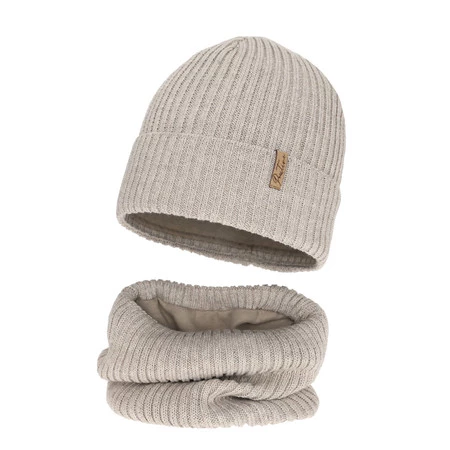 Die klassische Rippenstrickstruktur verleiht dem Set eine zeitlose Eleganz, während der stilvolle Aufnäher für einen modernen Akzent sorgt. Dank der Verwendung von Merinowolle bietet das Winterset Odette natürliche thermoregulierende Eigenschaften – es wärmt bei Kälte und verhindert Überhitzung.