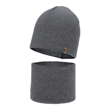 Herbst und Frühlingsset Jungen: Mütze und Schlauchschal, mit Baumwolle, grau, Lucer
