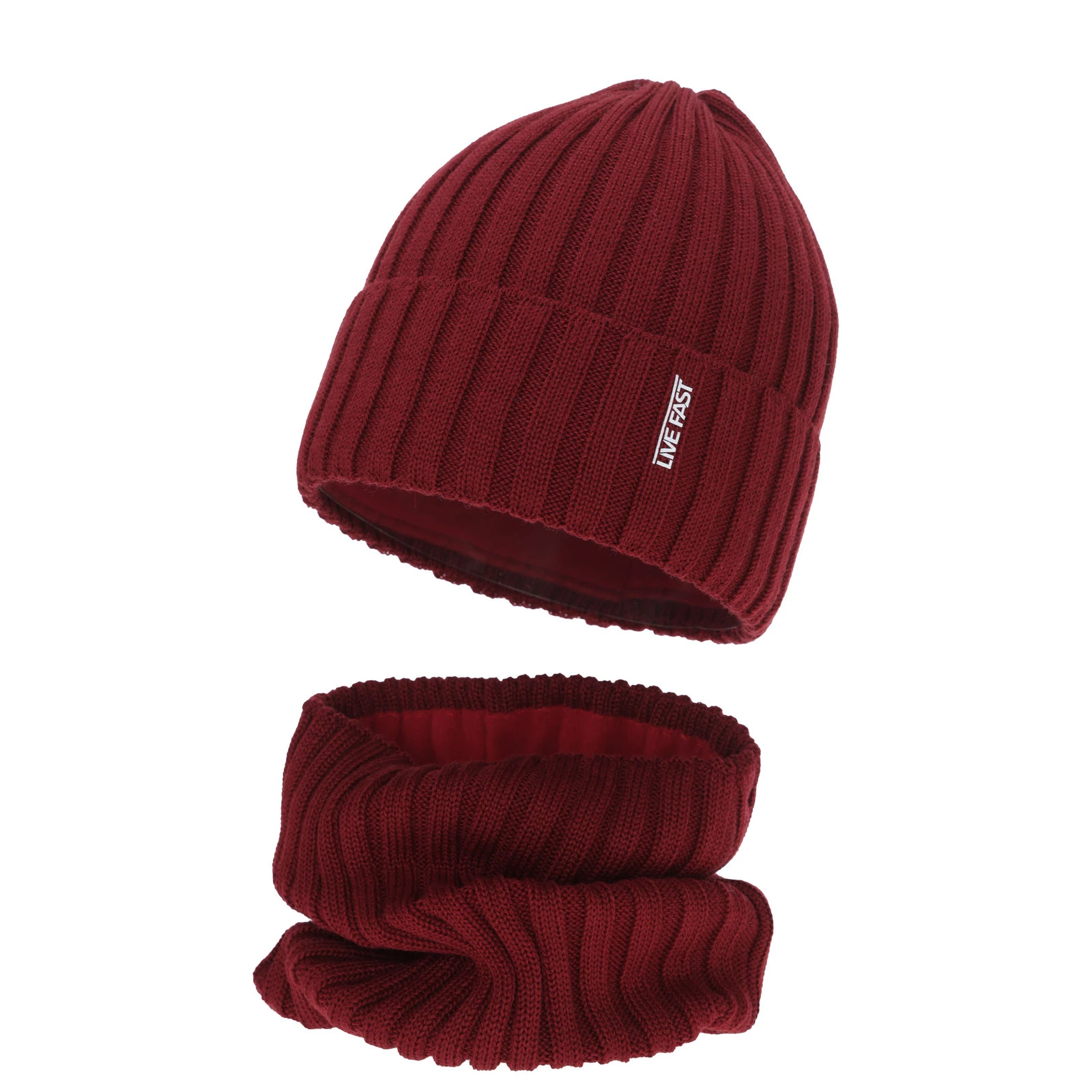 Winterset Jungen: Mütze und Schlauchschal, bordowy, mit Merinowolle, podszyty polarem, Banasko