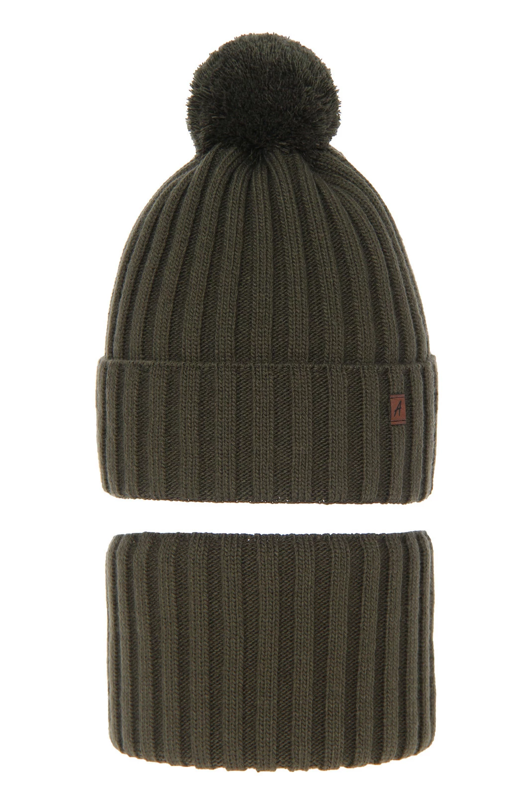 Winterset Jungen: Mütze und Schlauchschal mit Bommel khaki Wiliam