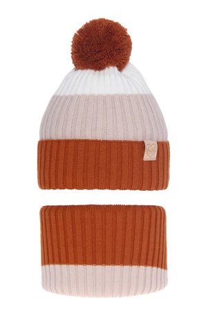 Winterset Mädchen: Mütze und Schlauchschal mit Bommel Braun Indiana