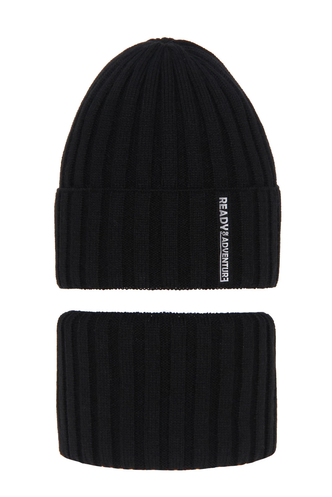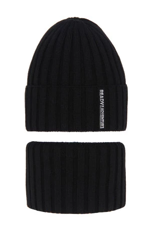 Winterset Jungen: Mütze und Schlauchschal Schwarz Livido