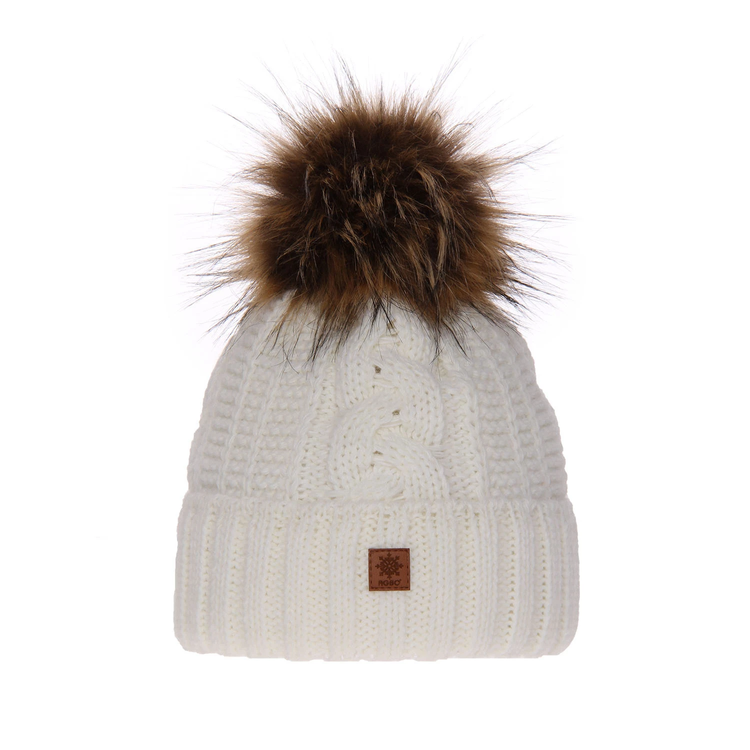 Wintermütze Damen mit Bommel Cremefarben Euforia