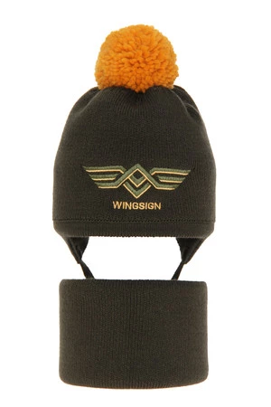 Winterset Jungen: Mütze und Schlauchschal mit Bommel Khaki Wings