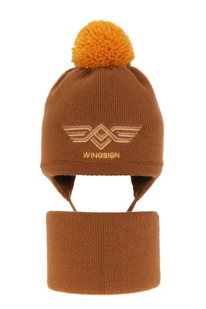 Winterset Jungen: Mütze und Schlauchschal mit Bommel Braun Wings