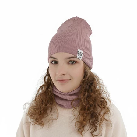 Herbst und Frühlingsset Mädchen: Mütze und Schlauchschal, mit Baumwolle, Rosa Farinka
