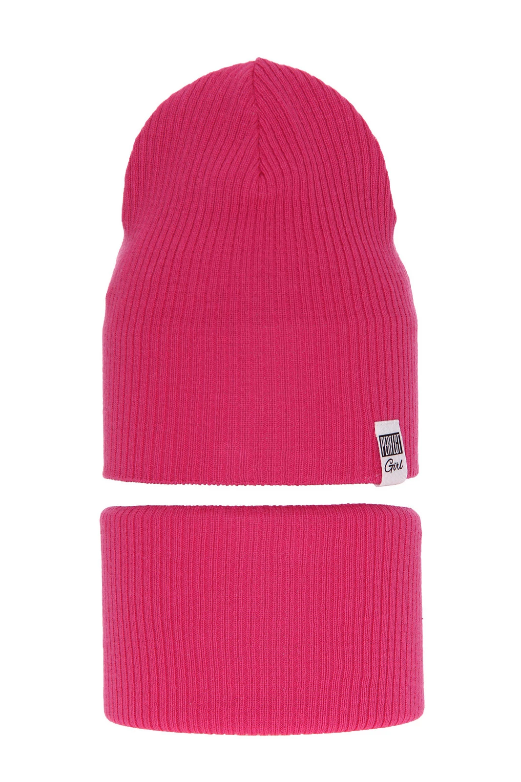 Herbst und Frühlingsset Mädchen: Mütze und Schlauchschal, mit Baumwolle, Rosa Farinka