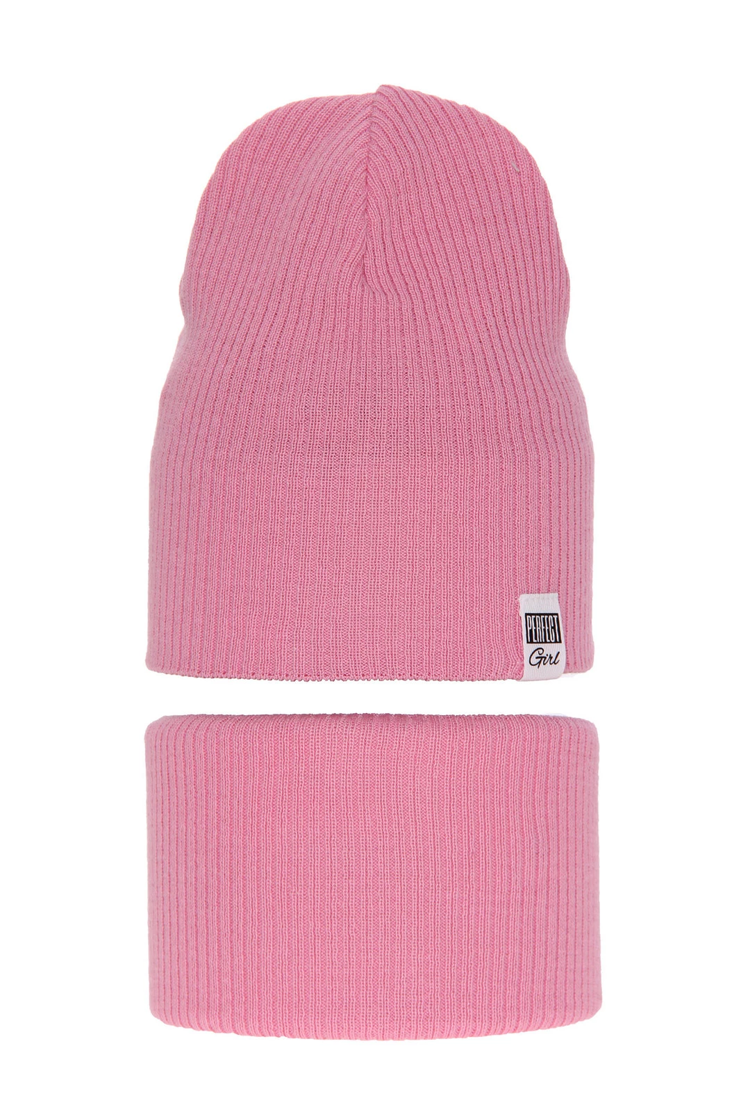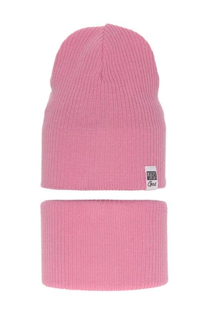 Herbst und Frühlingsset Mädchen: Mütze und Schlauchschal, mit Baumwolle, Rosa Farinka
