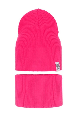 Herbst und Frühlingsset Mädchen: Mütze und Schlauchschal, mit Baumwolle, Rosa Farinka