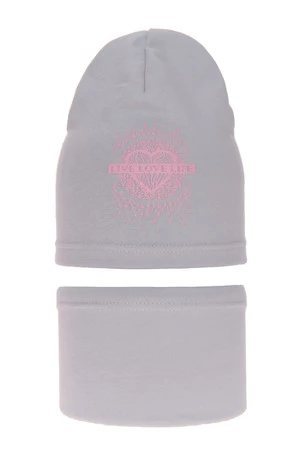 Herbst und Frühlingsset Mädchen baumwolle: Mütze und Schlauchschal Grau Esmeralda