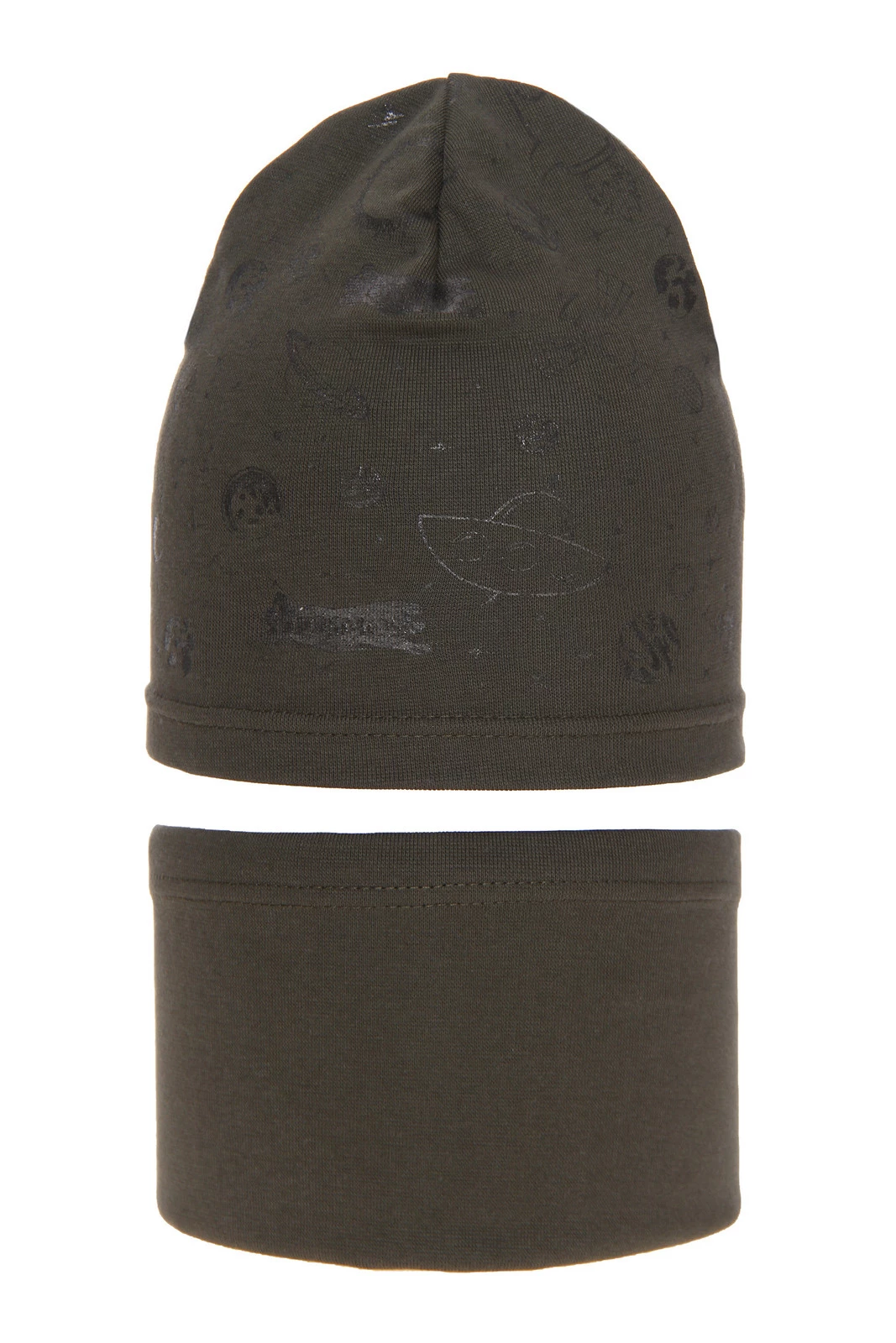 Herbst und Frühlingsset Jungen: Mütze und Schlauchschal Khaki Kosmos