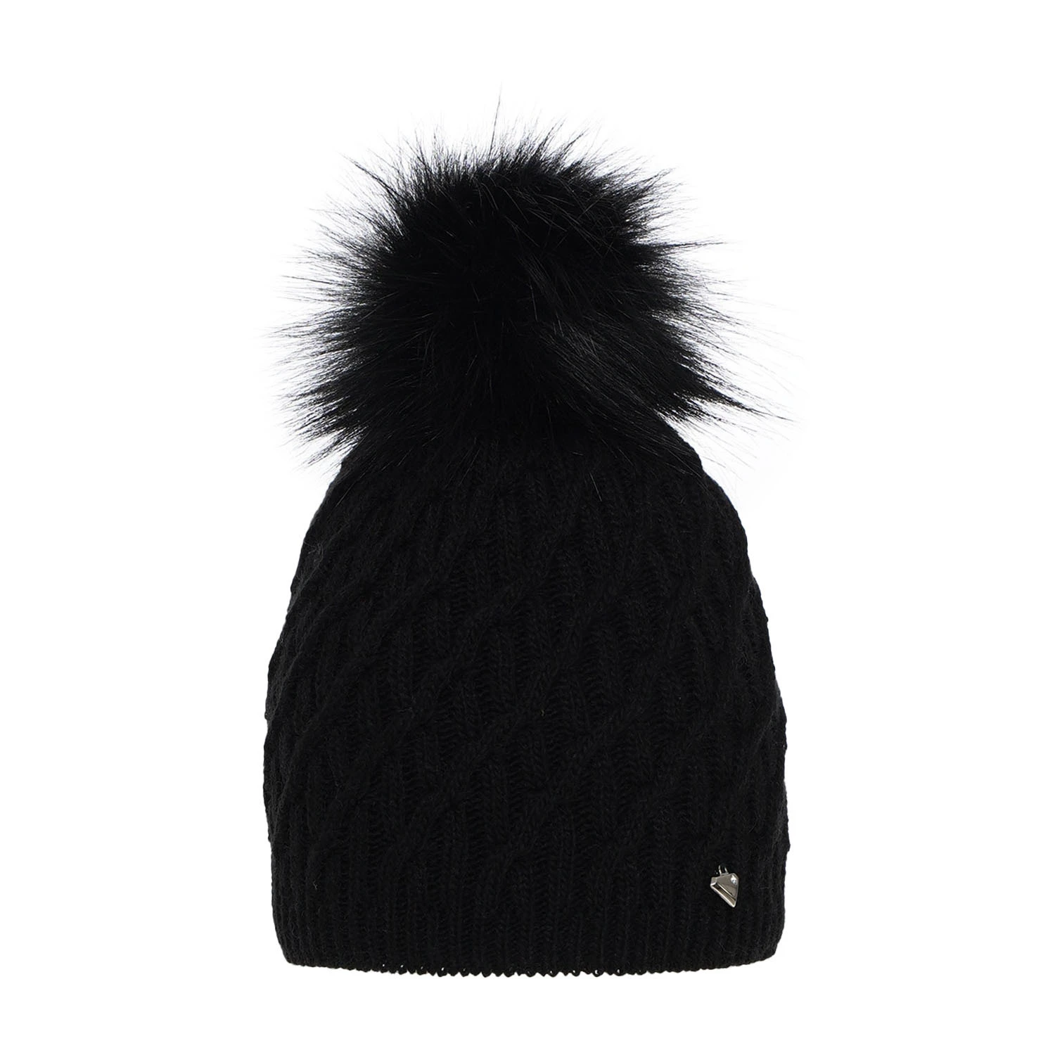 Wintermütze Damen mit Bommel Schwarz Kaskada