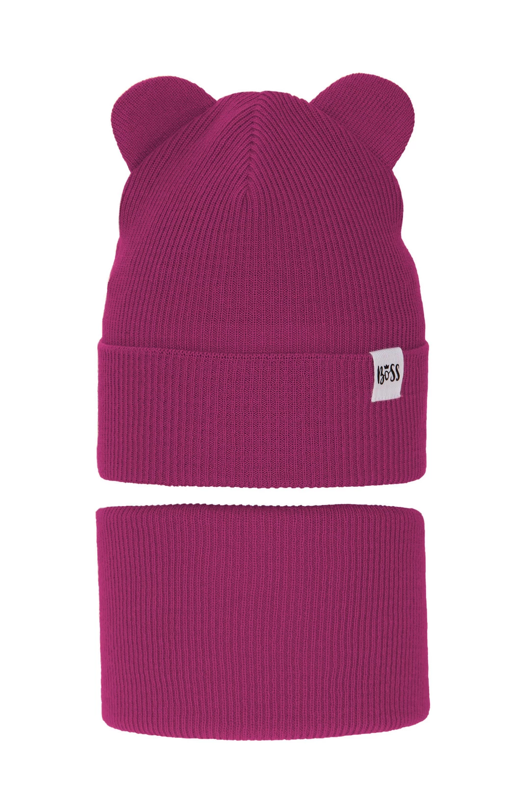 Herbst und Frühlingsset Mädchen: Mütze und Schlauchschal, mit Baumwolle, Rosa Kajra