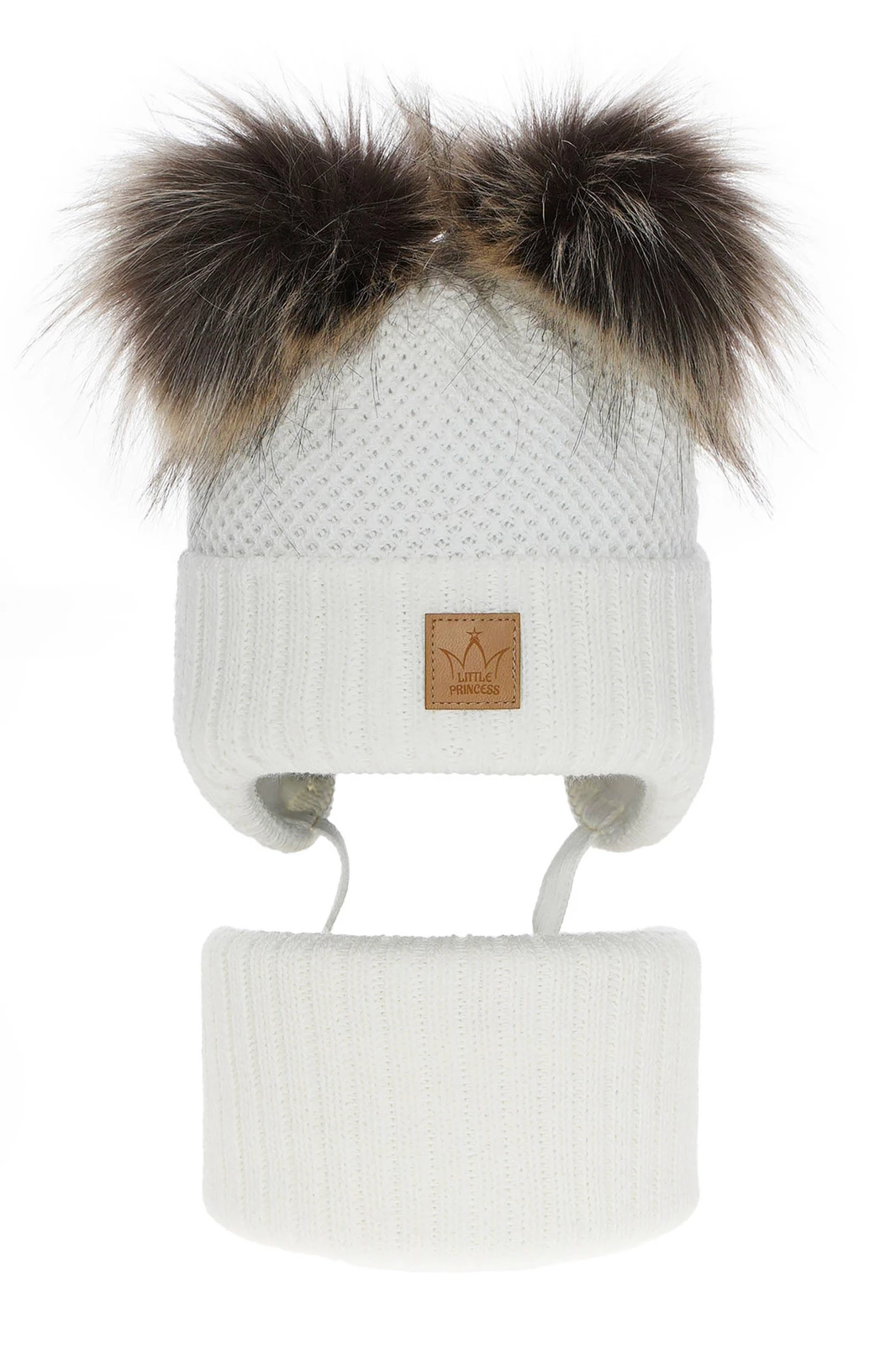 Winterset Mädchen: Mütze und Schlauchschal mit zwei Bommeln Weiß Minsi