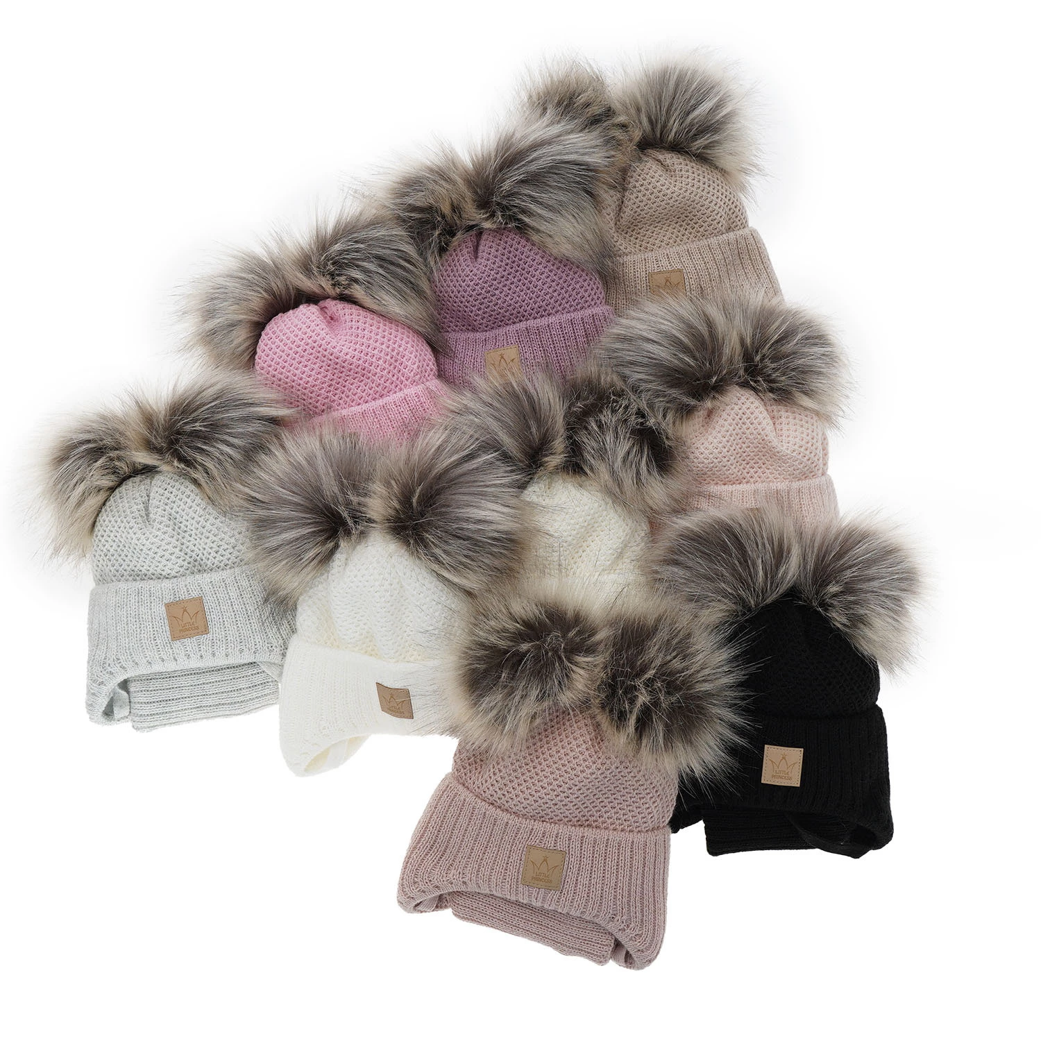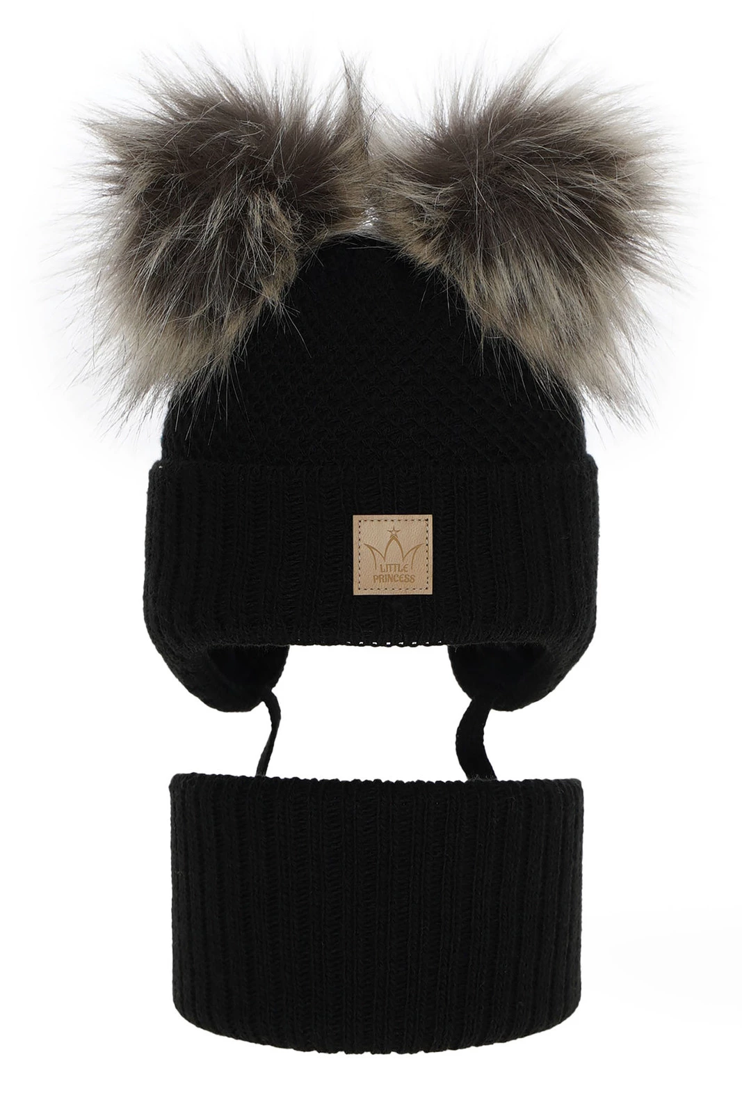 Winterset Mädchen: Mütze und Schlauchschal mit zwei Bommeln Schwarz Minsi