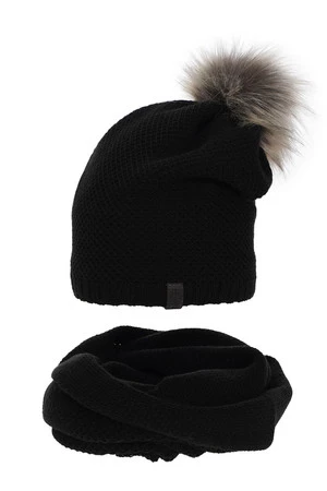 Winterset Damen: Mütze und Schlauchschal Schwarz Kaliana