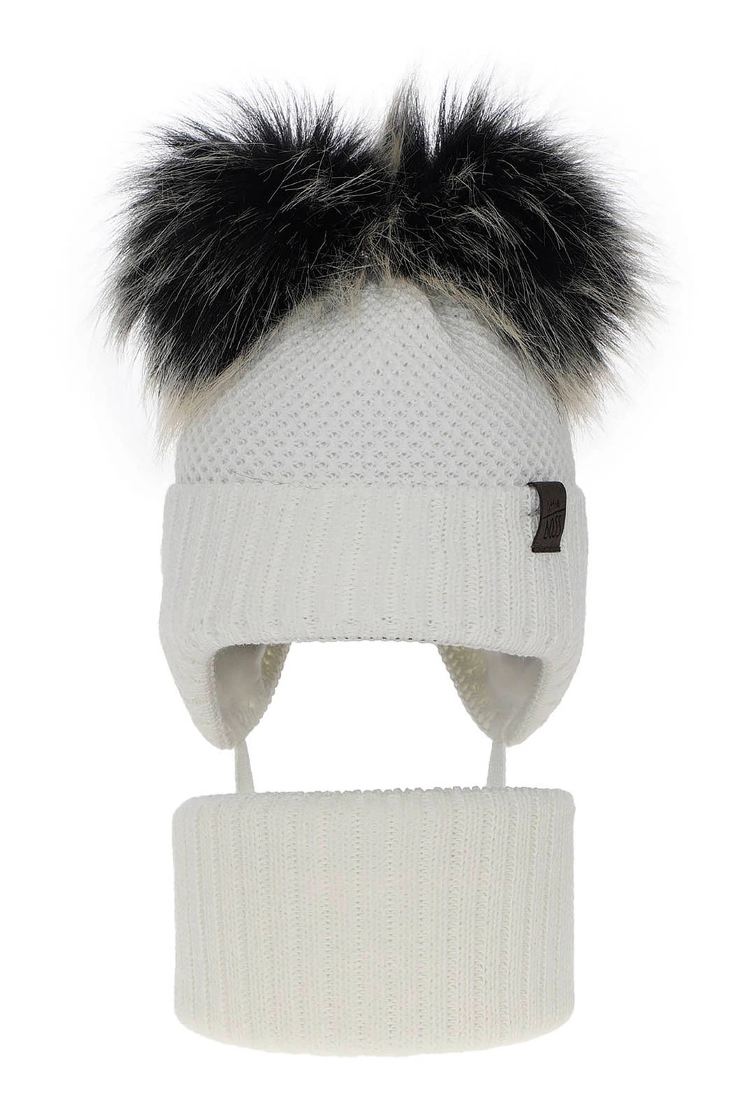 Winterset Jungen: Mütze und Schlauchschal mit zwei Bommeln Weiß Randel